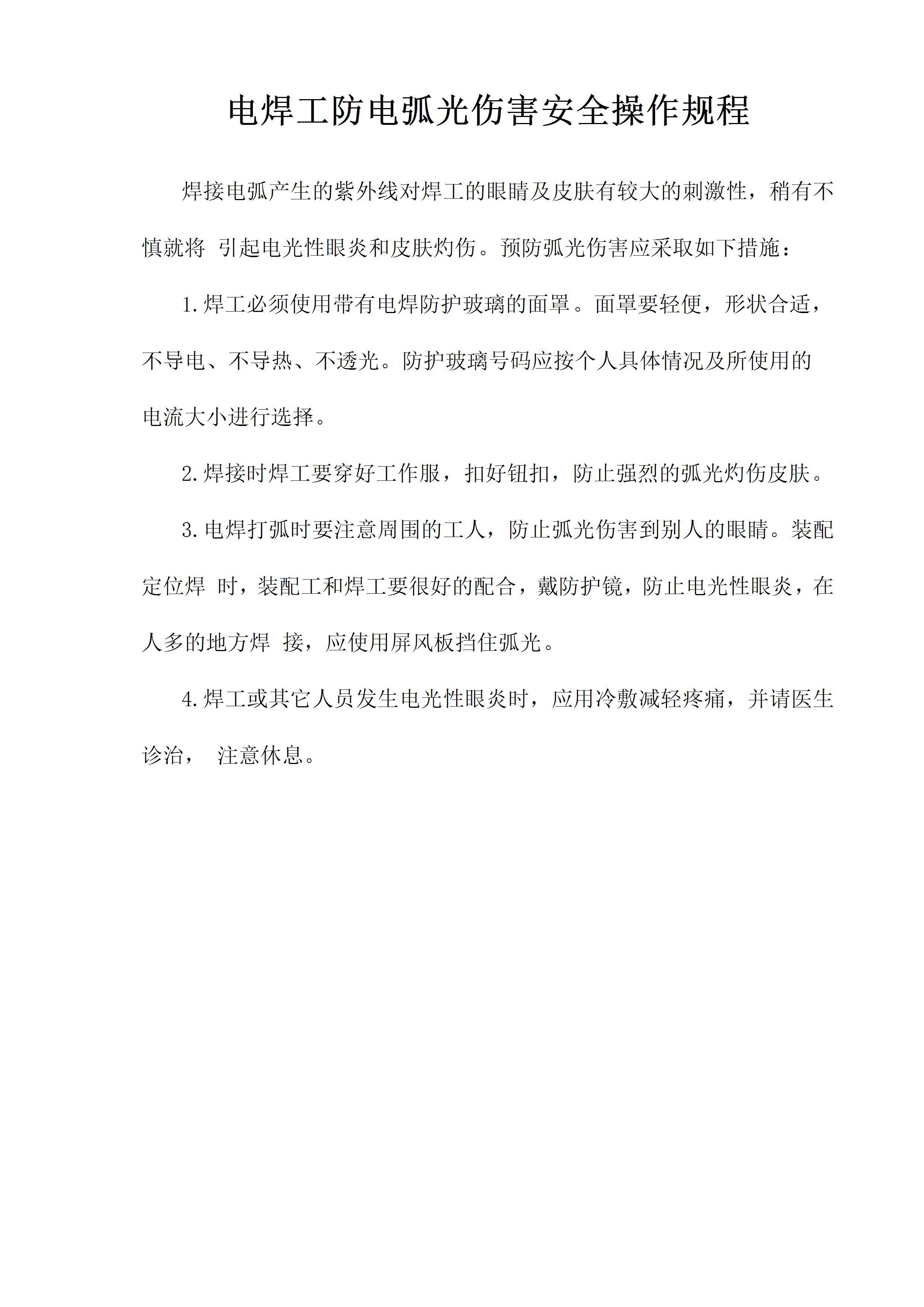 / 电焊工防电弧光伤害安全操作规程[文档版]