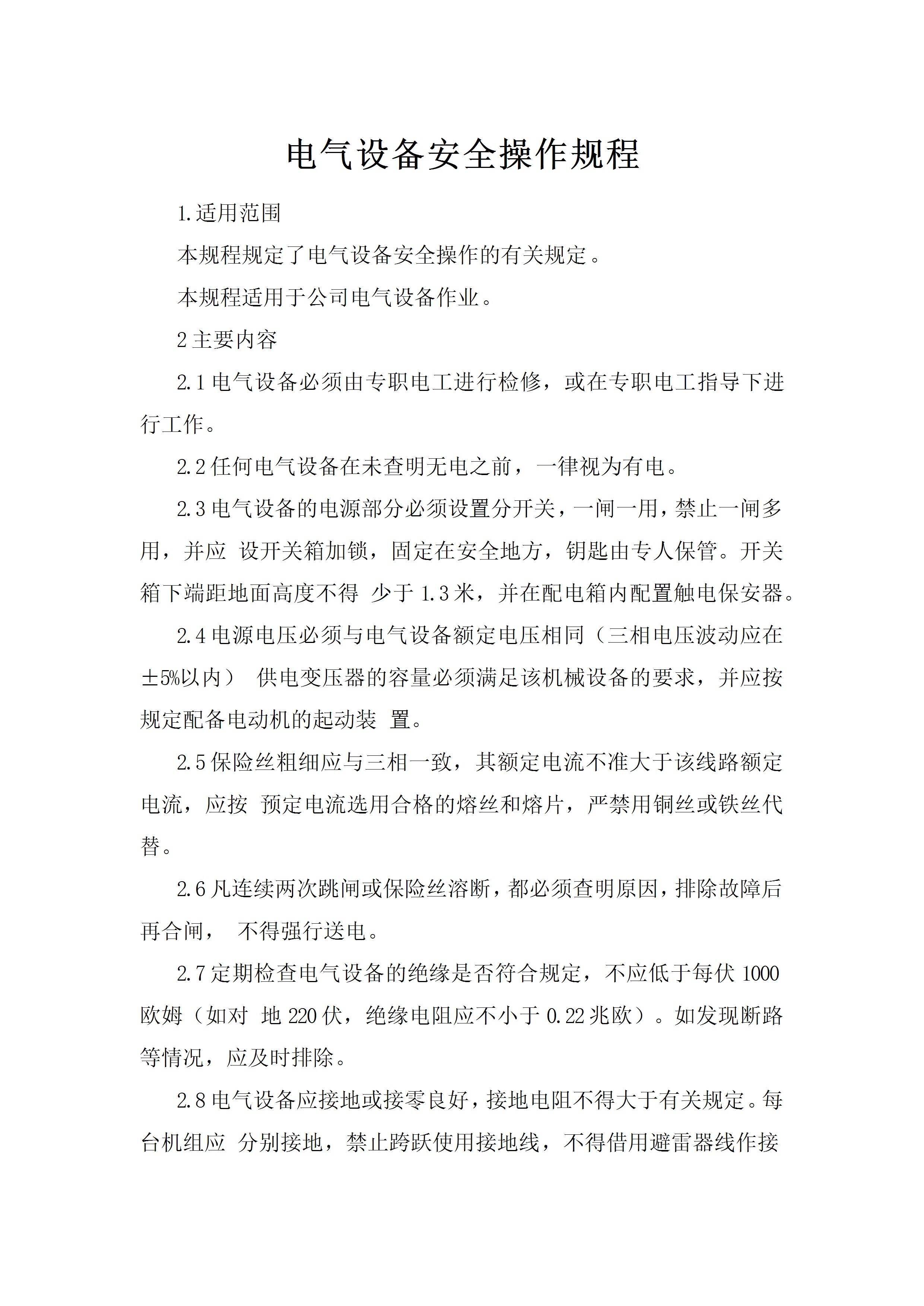 电气设备安全操作规程[文档版]