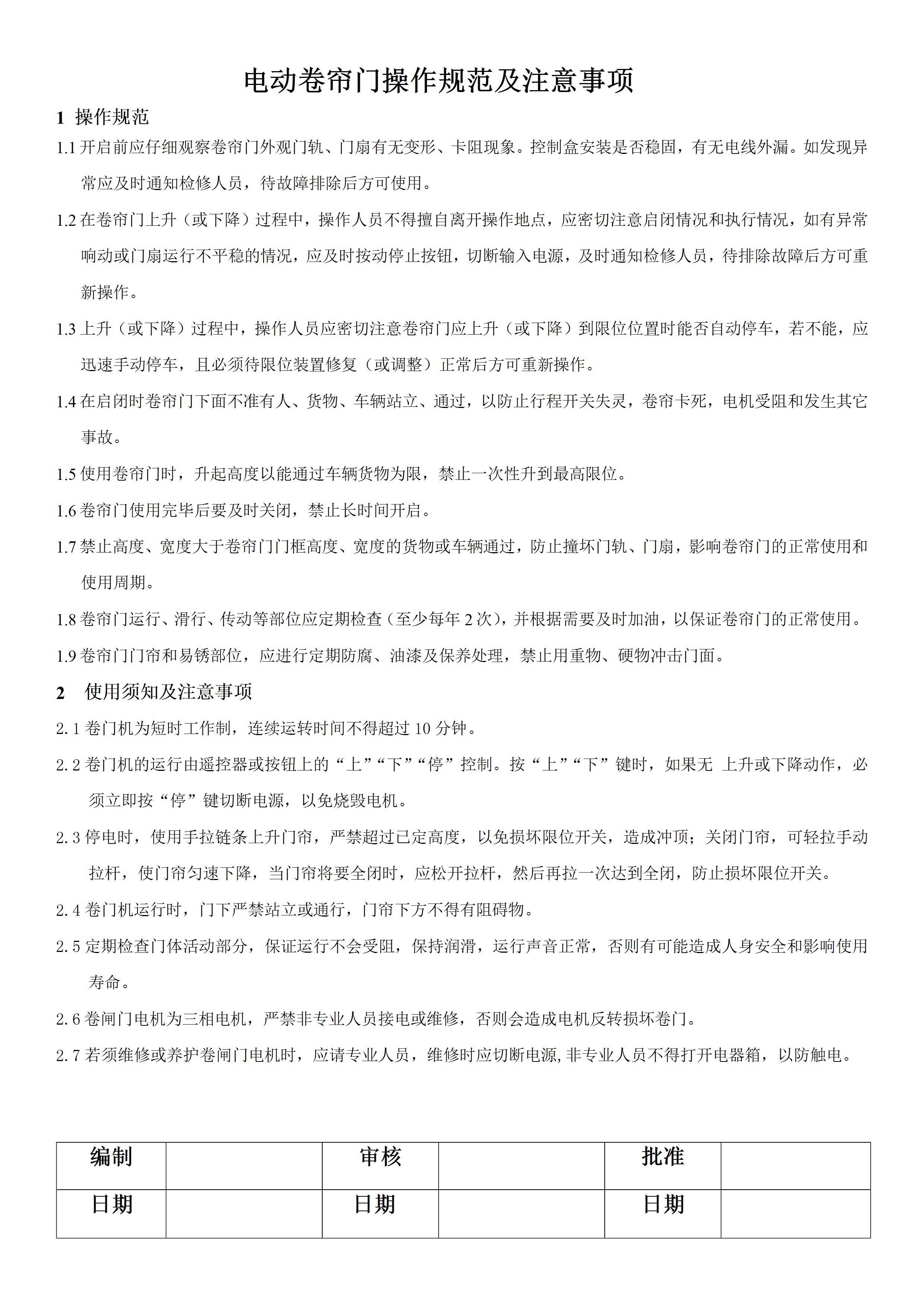 / 电动卷帘门操作规程[文档版]