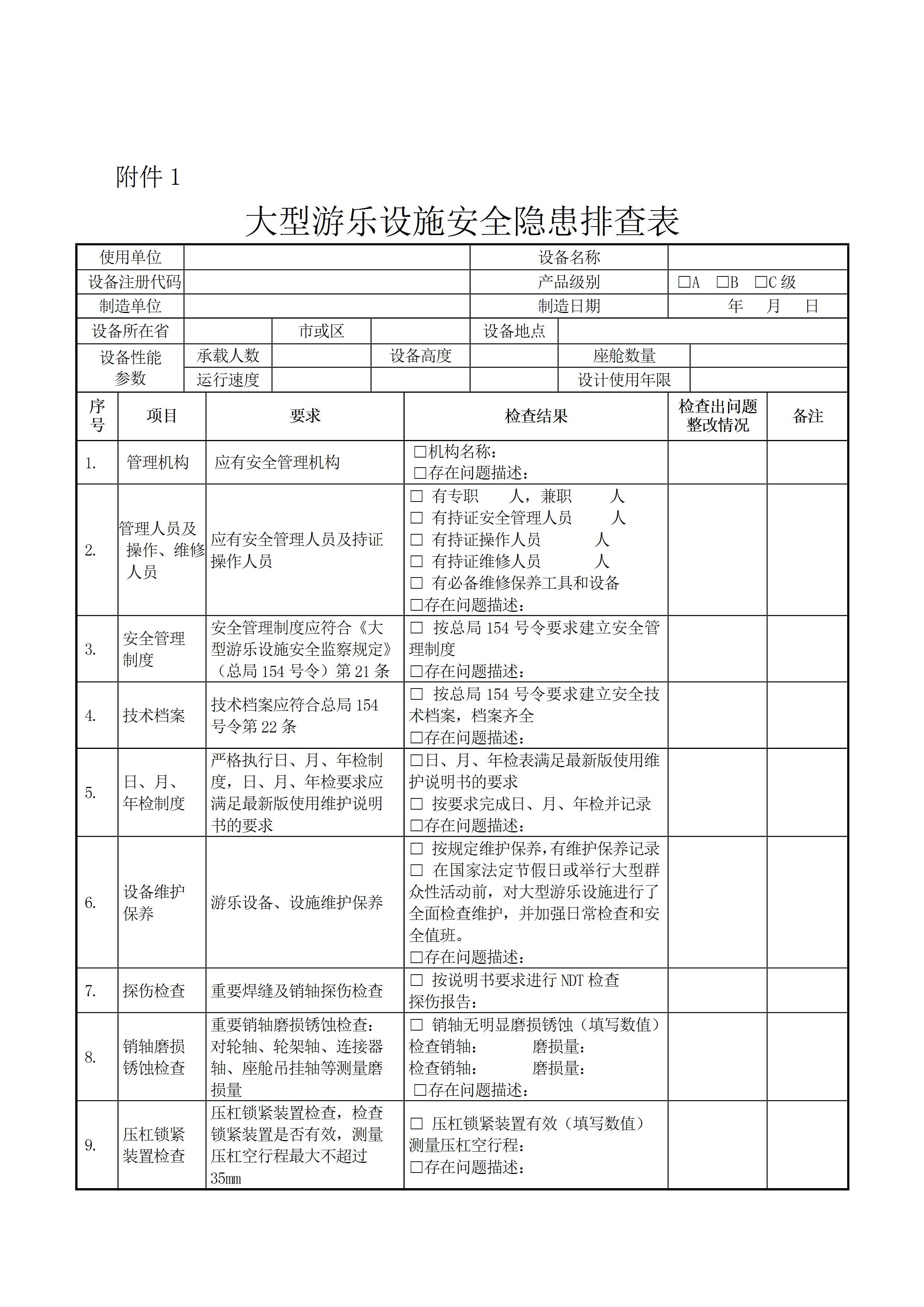 / 大型游乐设施及其使用单位和客运索道安全隐患检查汇总表[文档版]