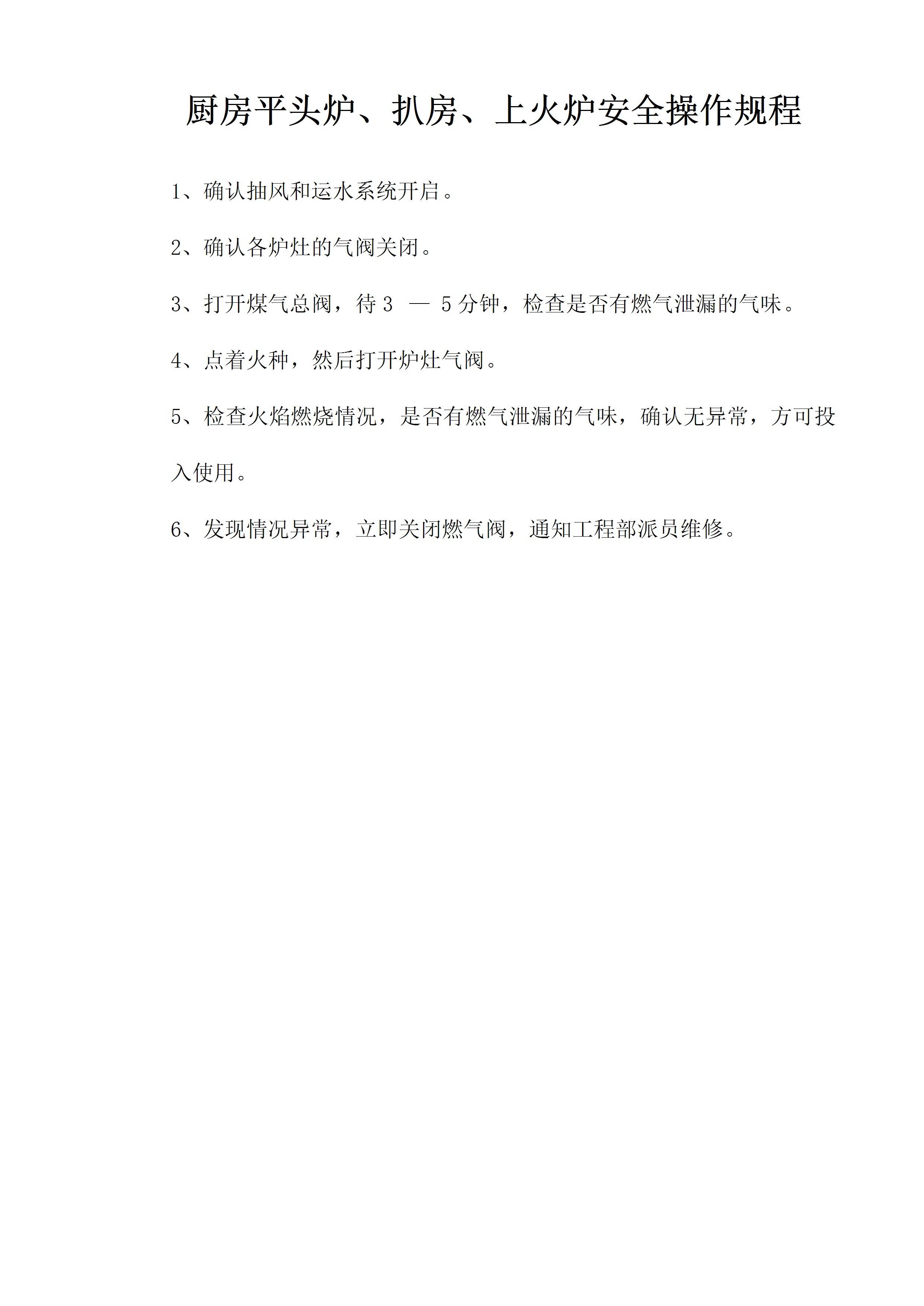 厨房平头炉扒房上火炉安全操作规程[文档版]