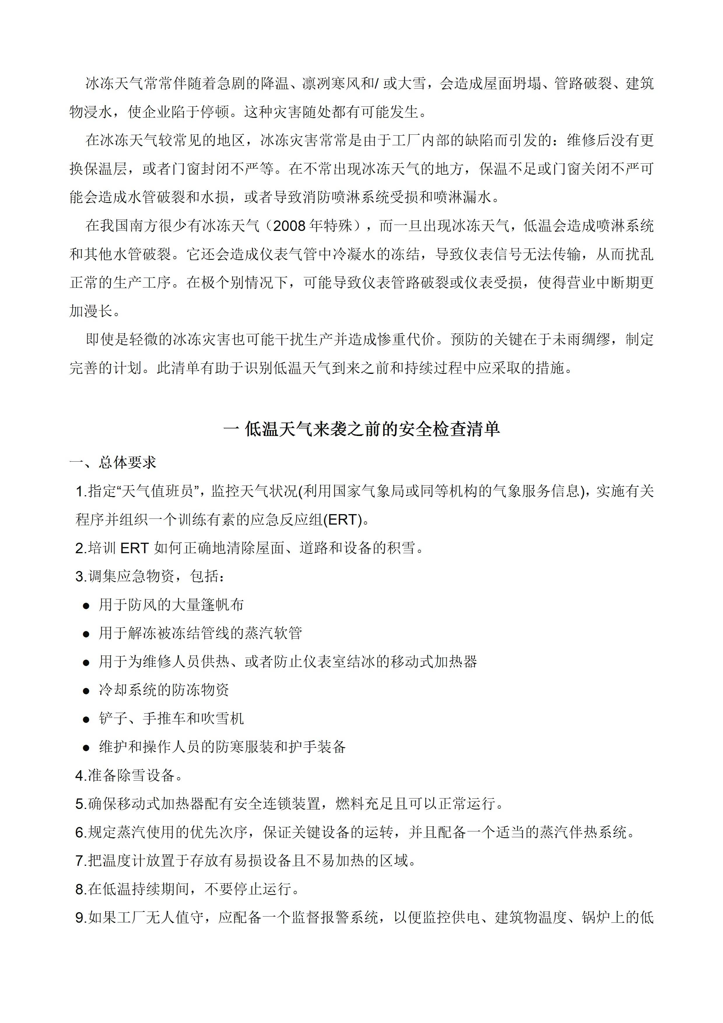低温天气安全生产检查清单[文档版]