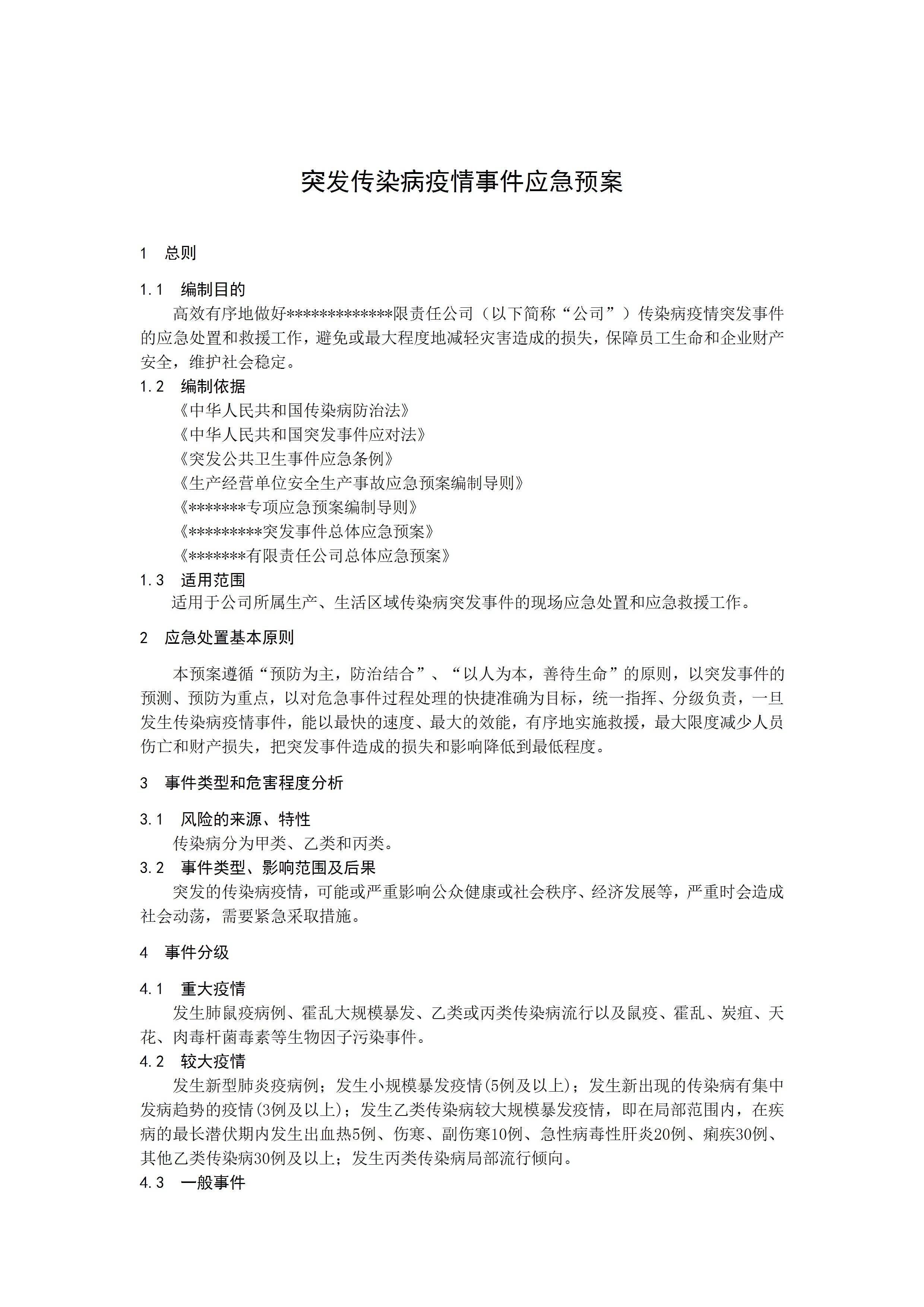 传染病疫情事件应急预案[文档版]