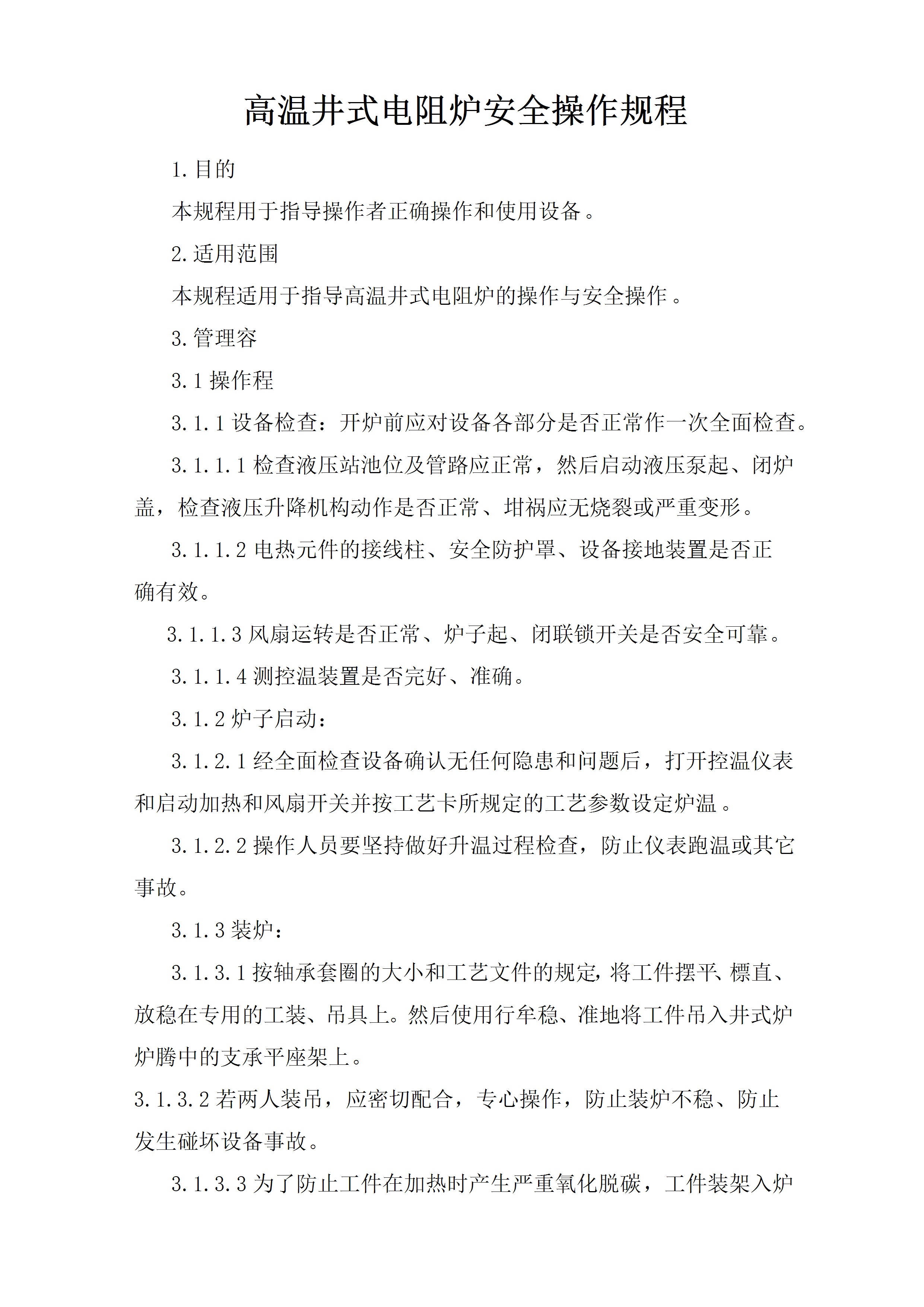 / 高温井式电阻炉安全操作规程[文档]