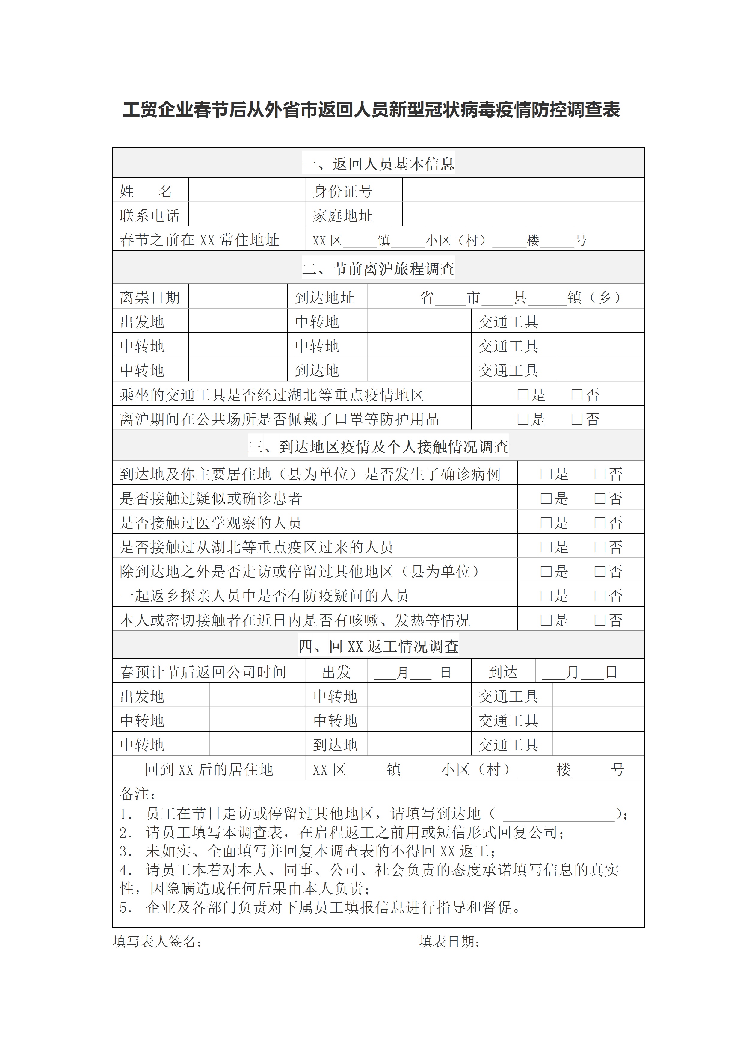 / 防疫工作表企业节后外省市返工人员新型冠状病毒疫情防控调查表[文档]