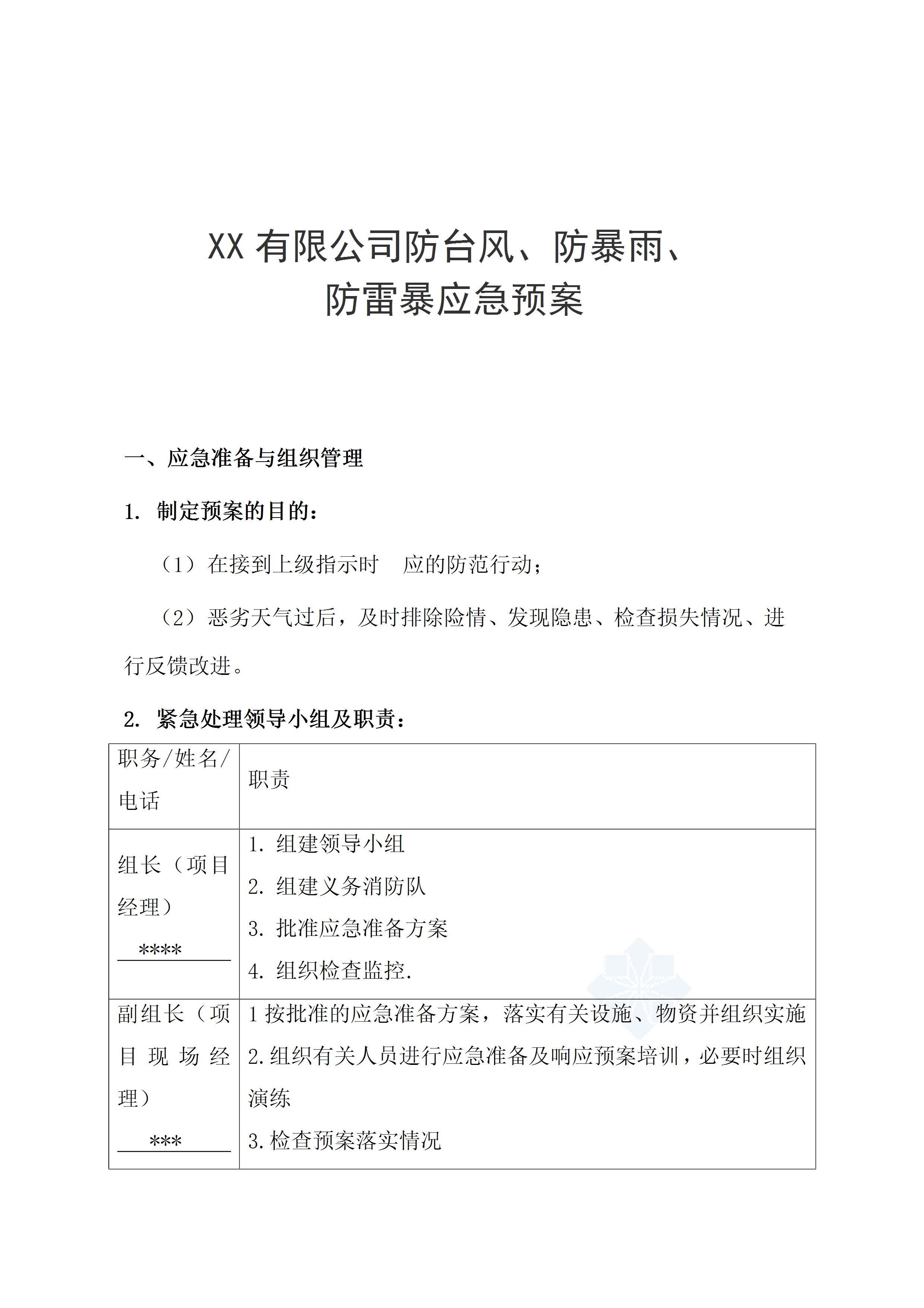 / 防台风.防暴雨. 防雷暴应急预案[文档]