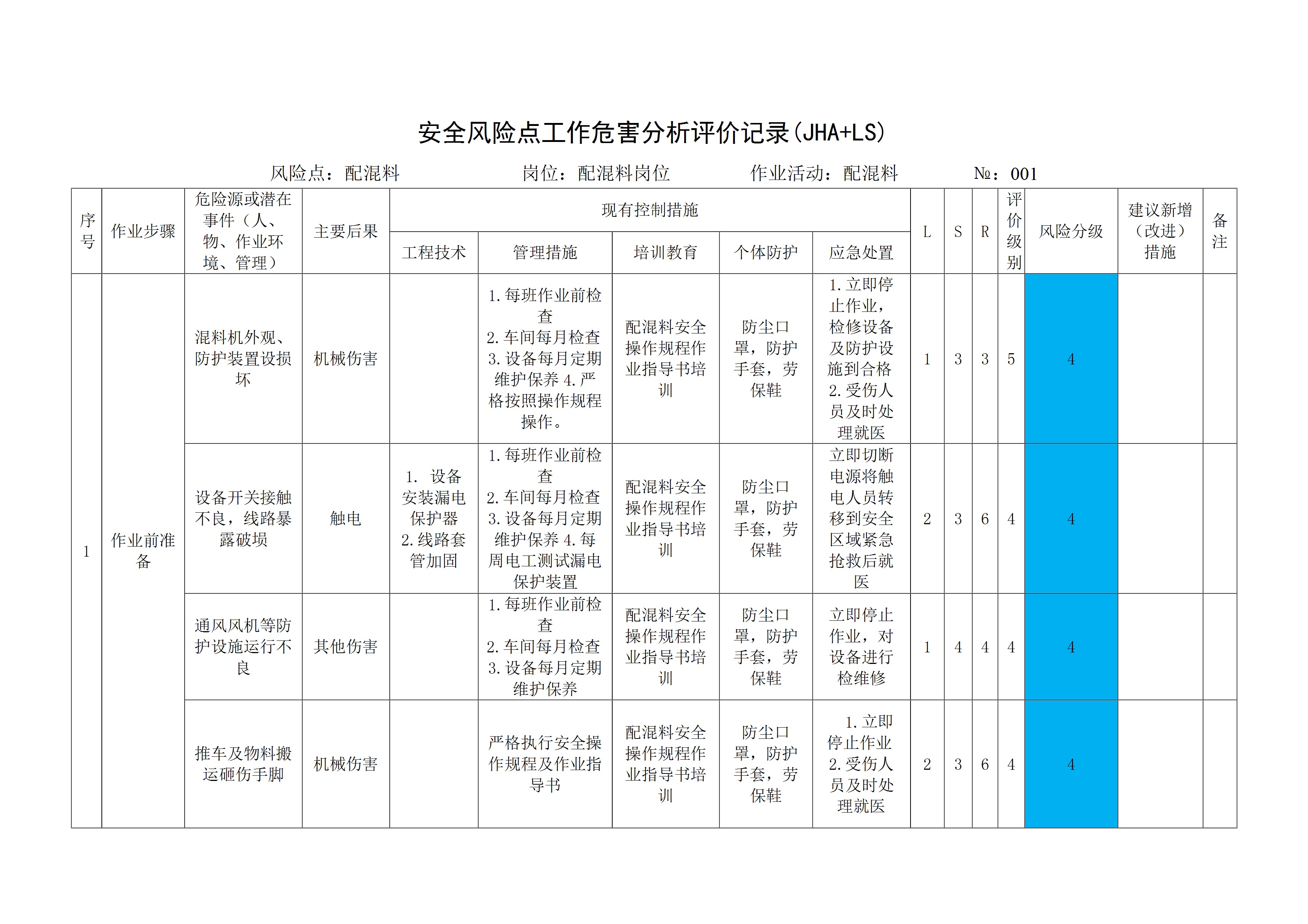 岗位作业活动安全风险点工作危害分析评价记录JHALS[文档]