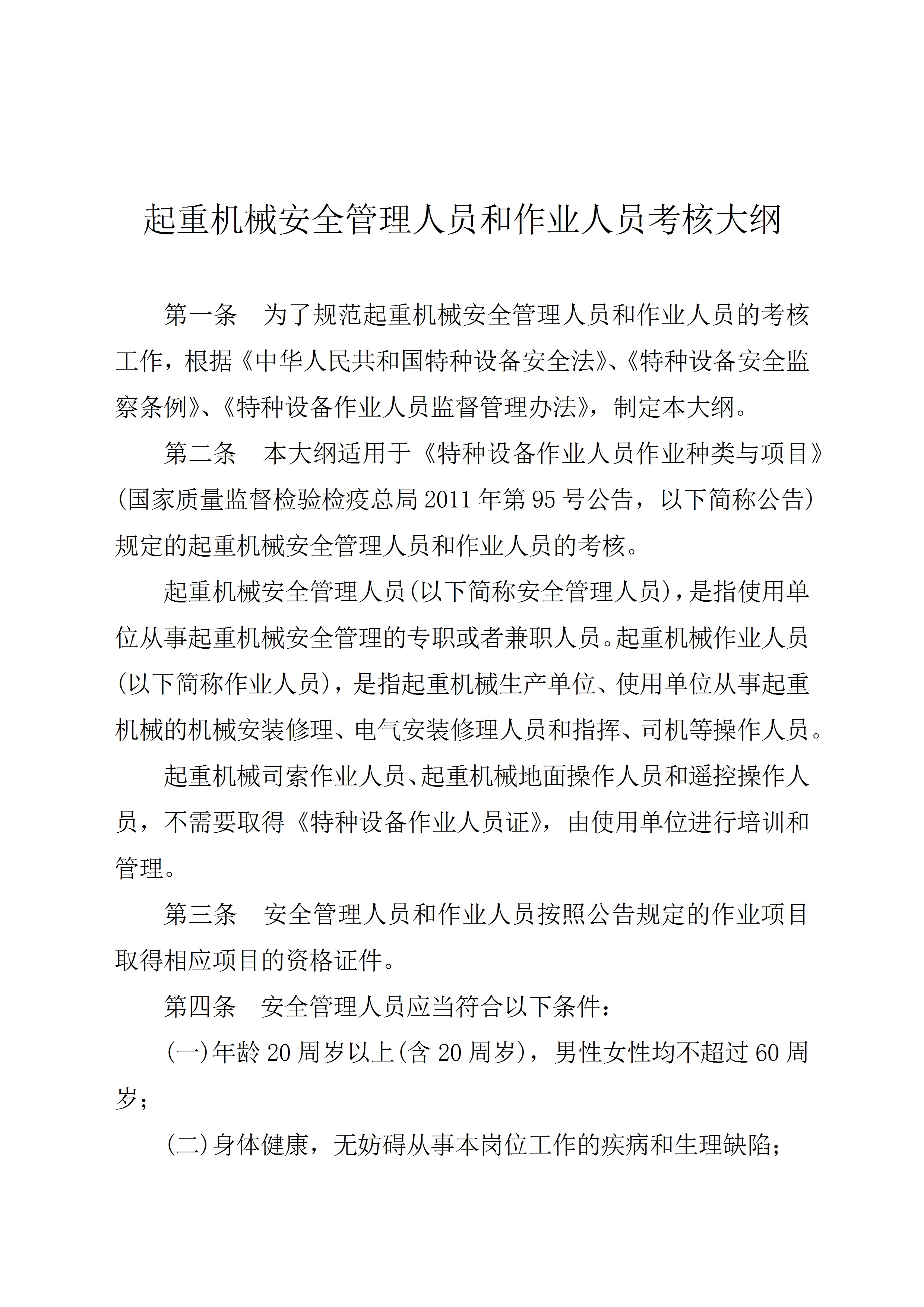 / 起重机械安全管理人员和作业人员考核大纲[文档]