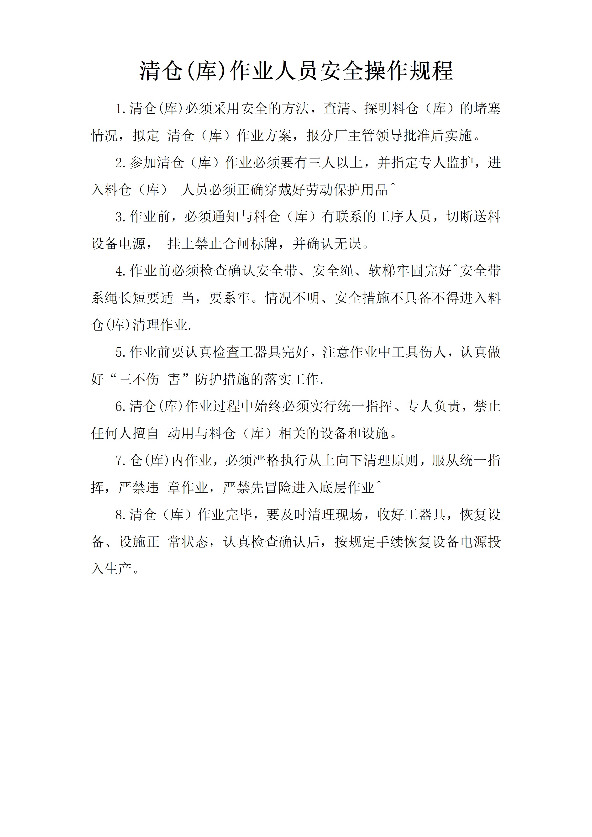 清仓库作业人员安全操作规程[文档]