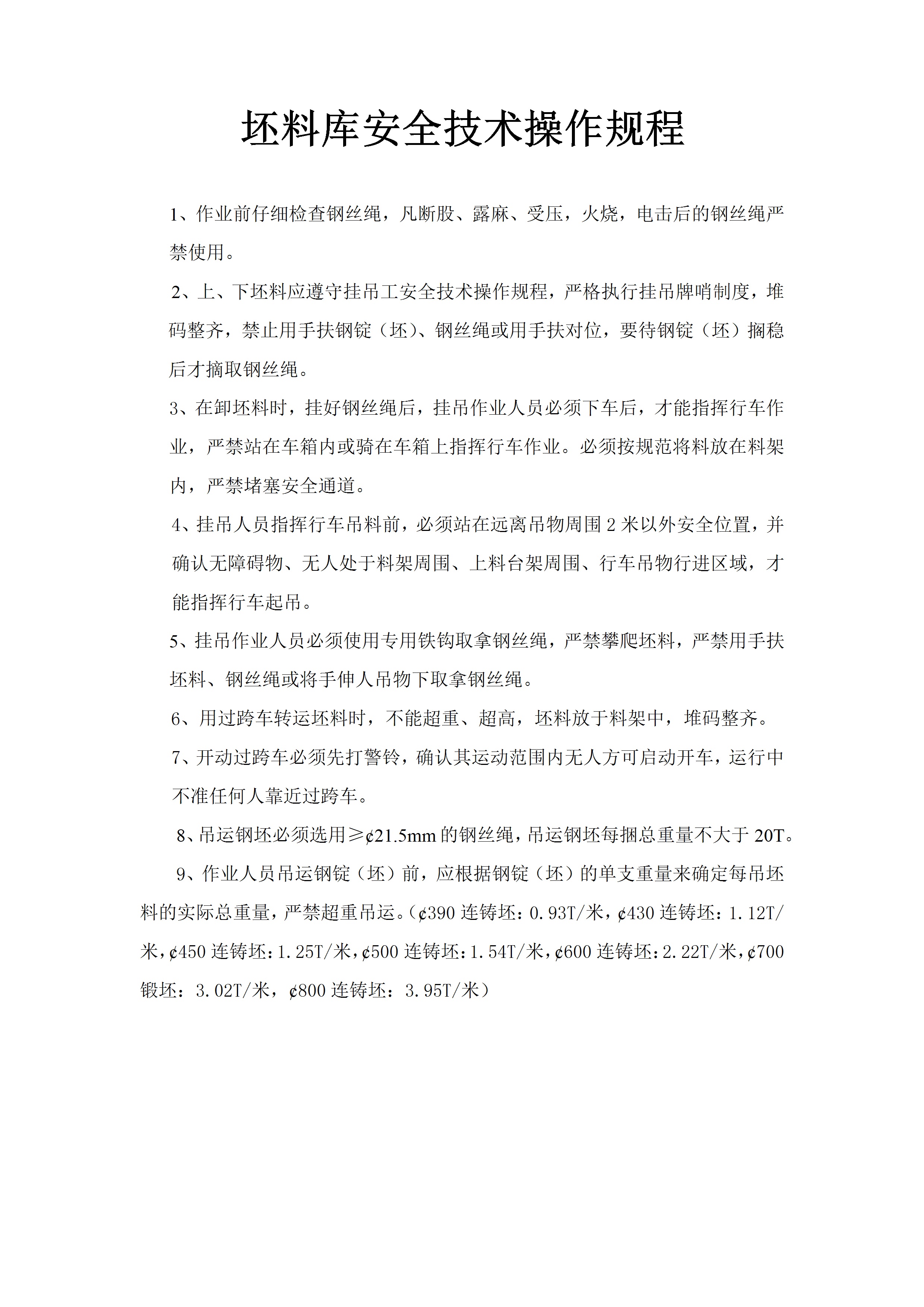 坯料库安全技术操作规程[文档]
