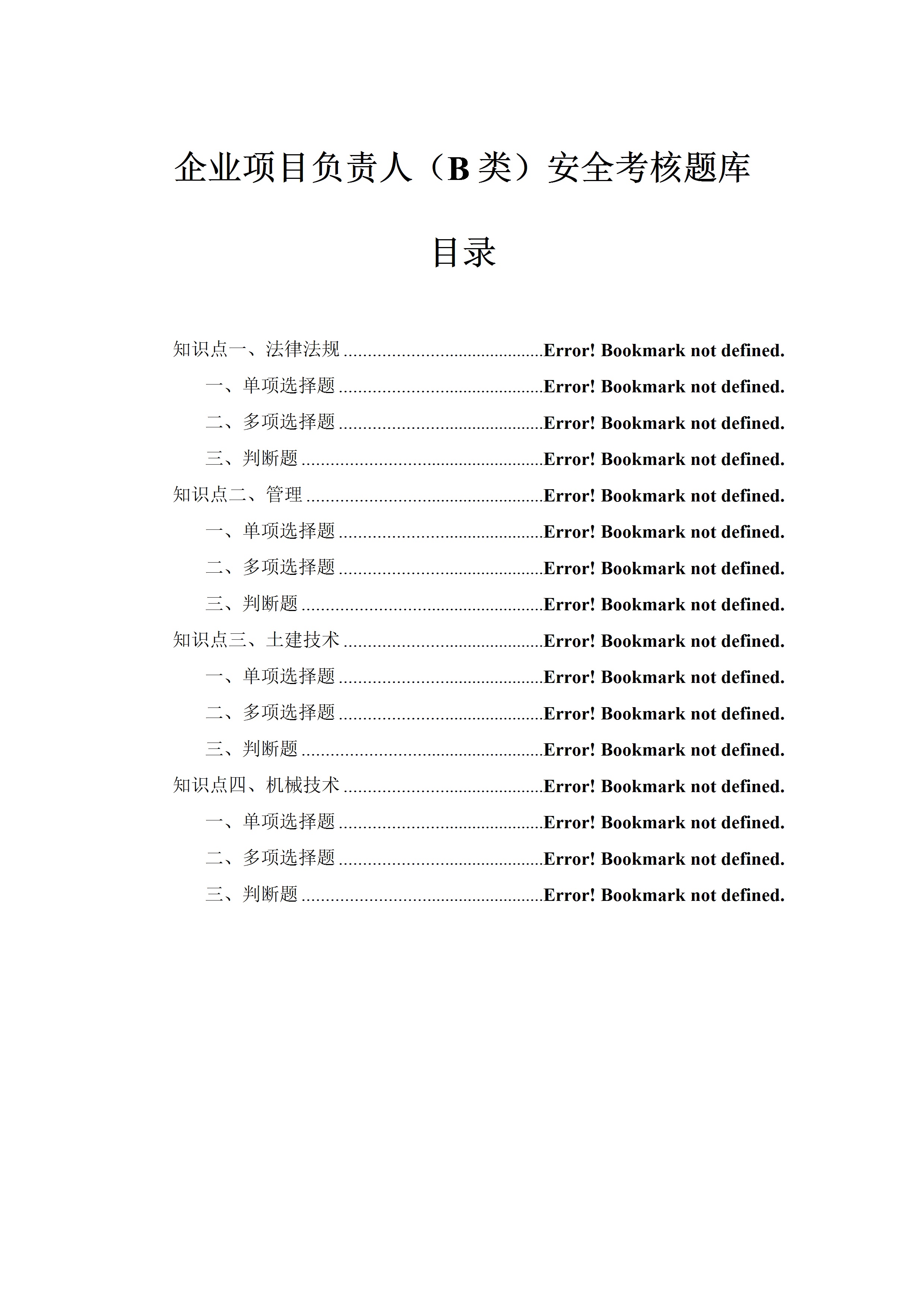 / 企业项目负责人B类安全考核题库专题[文档]