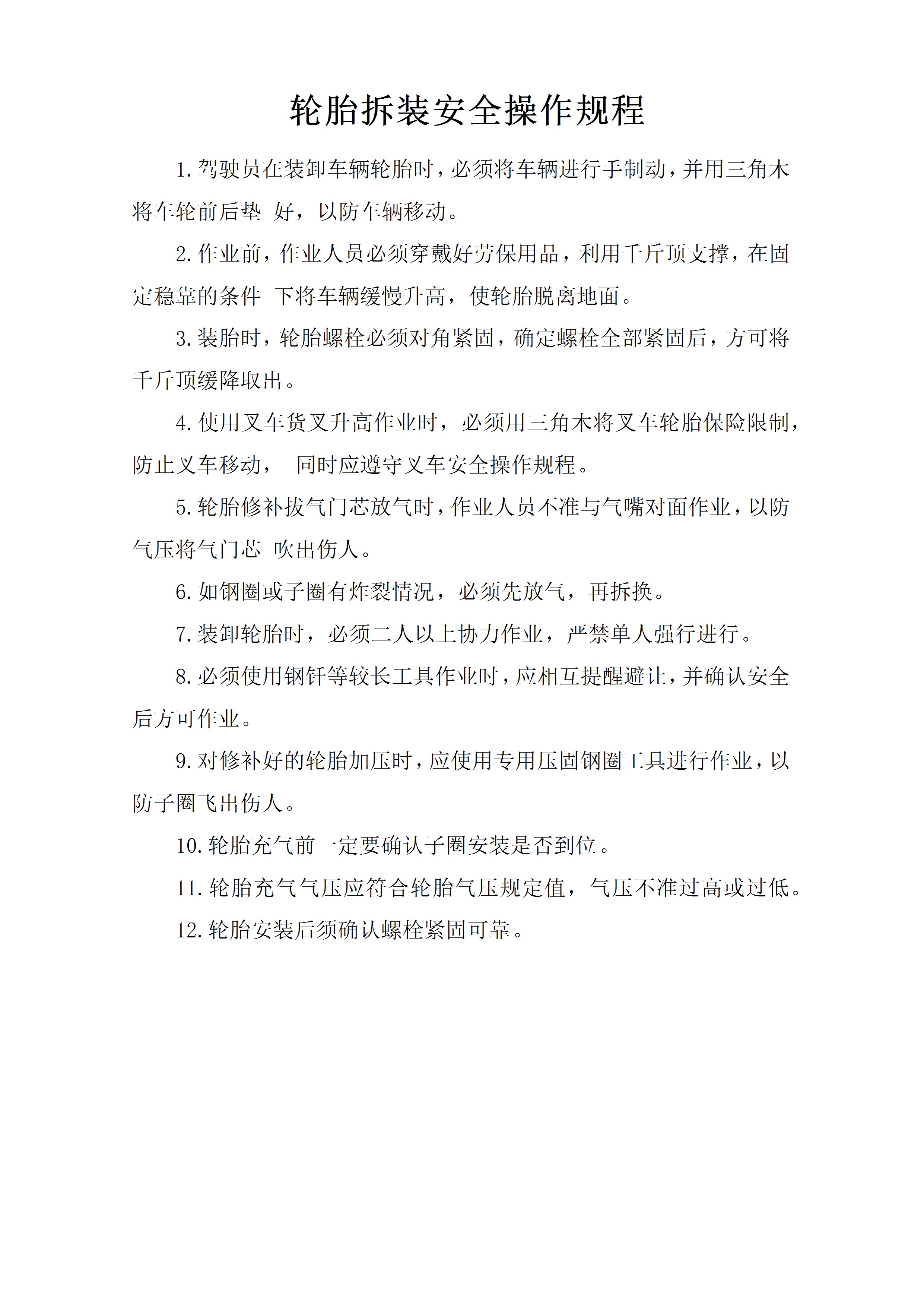 / 轮胎拆装安全操作规程[文档]