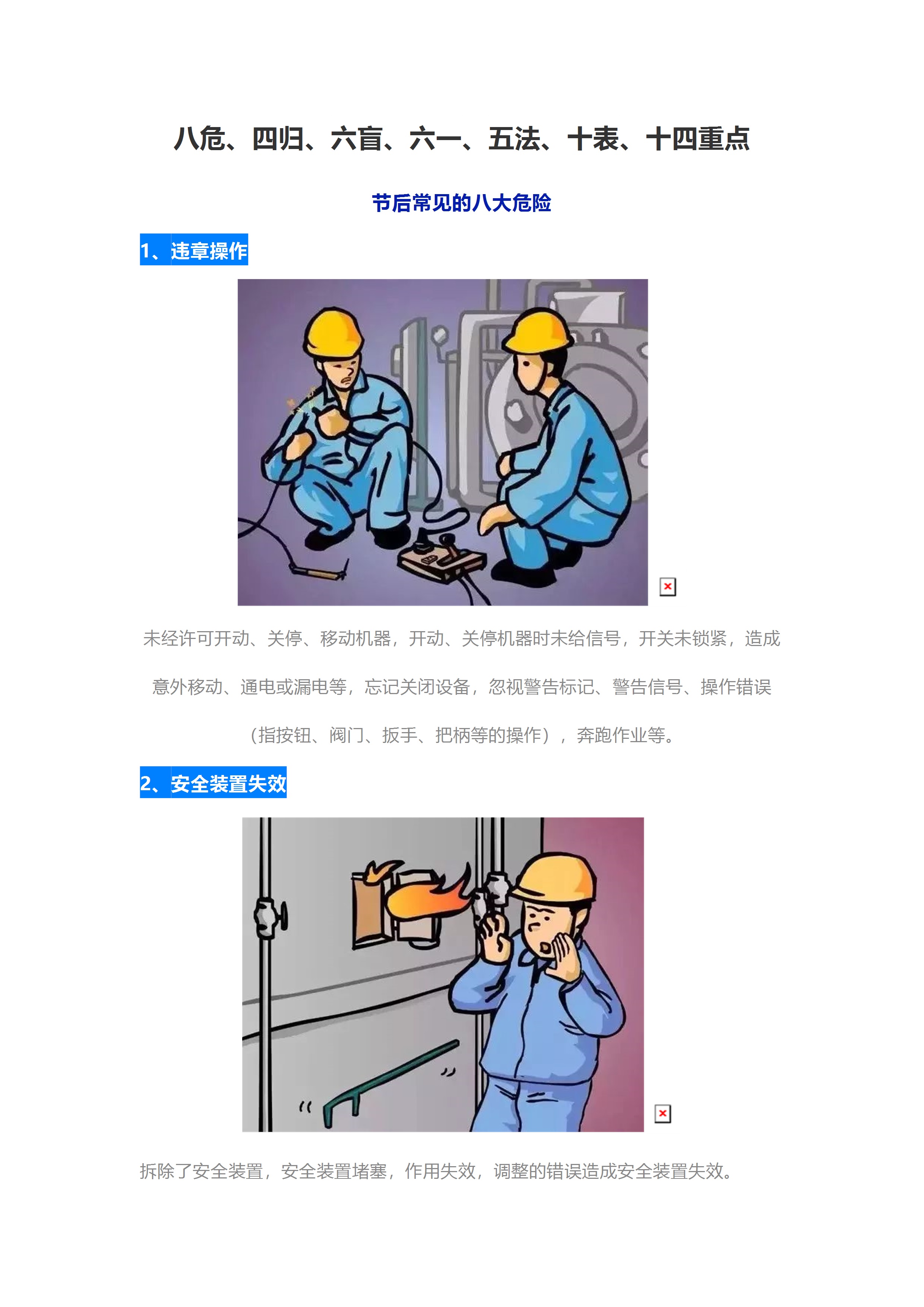节后安全生产管理八危 四归 六盲 六一 五法 十表 十四重点[文档]