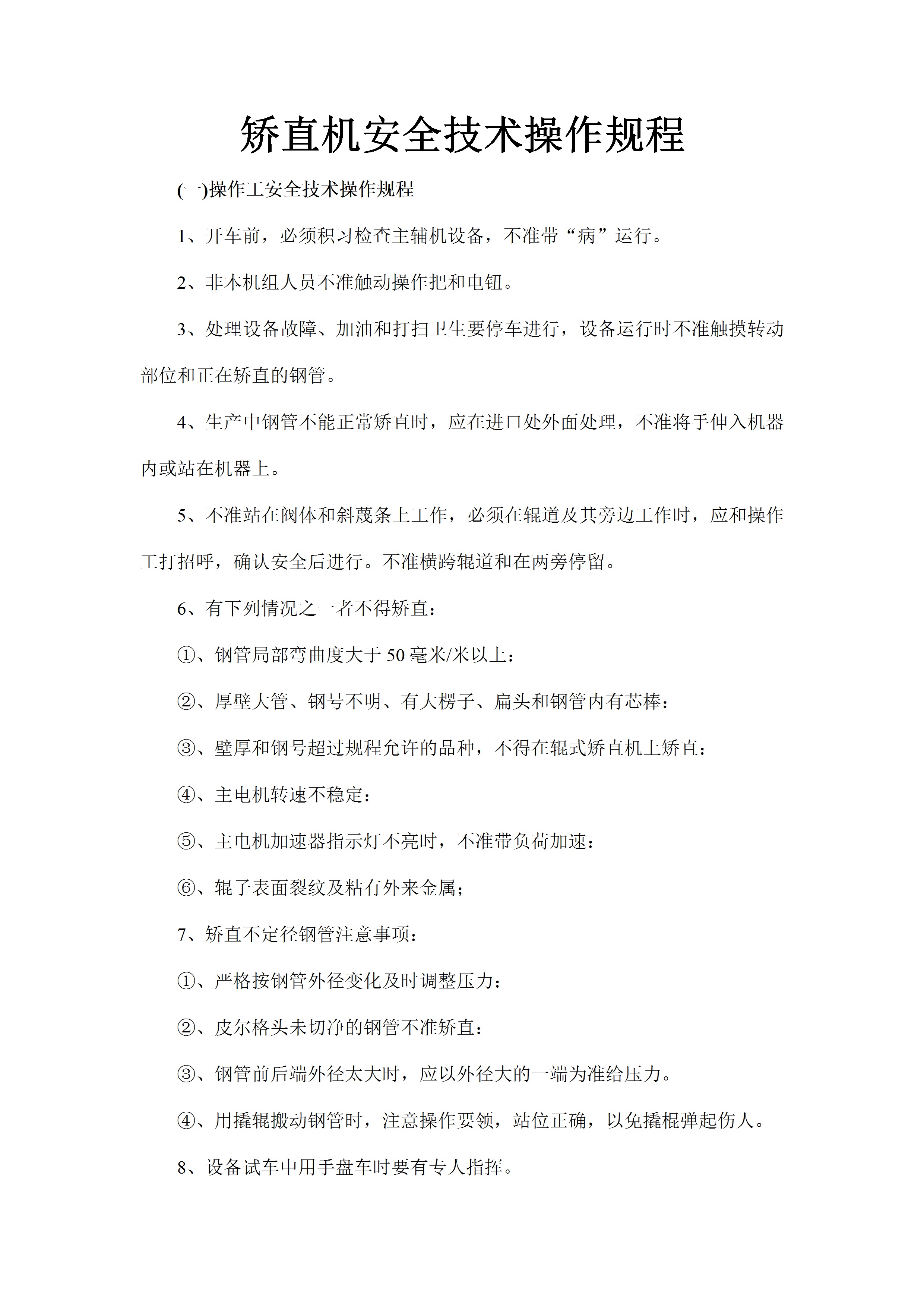 矫直机安全技术操作规程[文档]