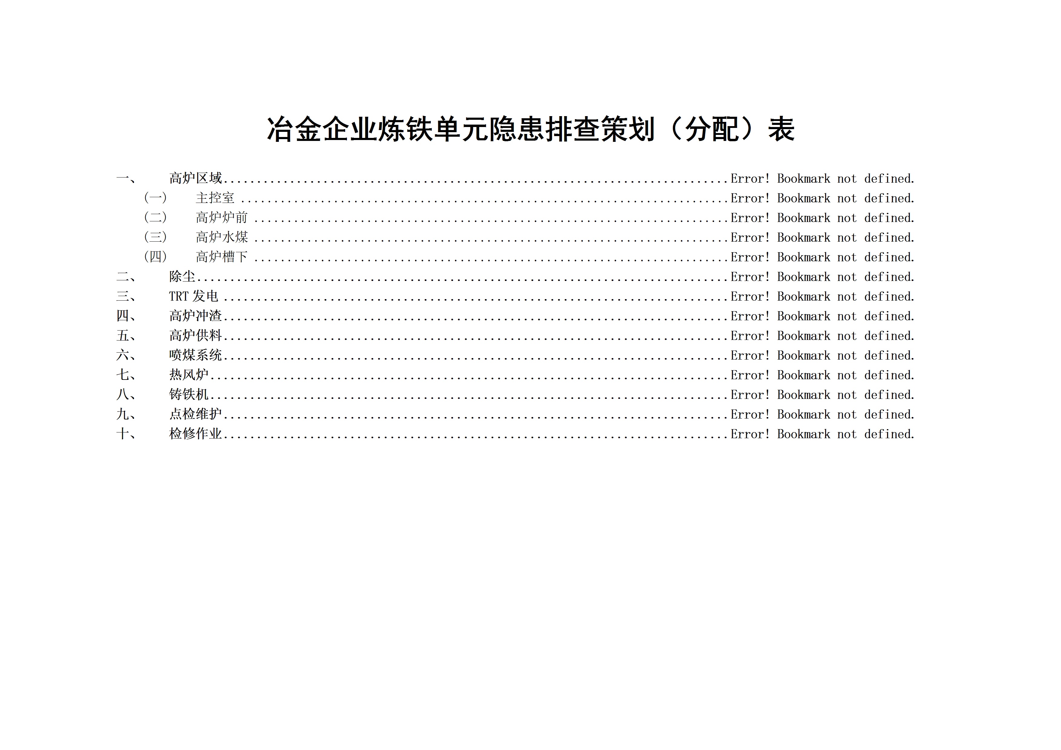 / 炼铁隐患排查策划分配表[文档]