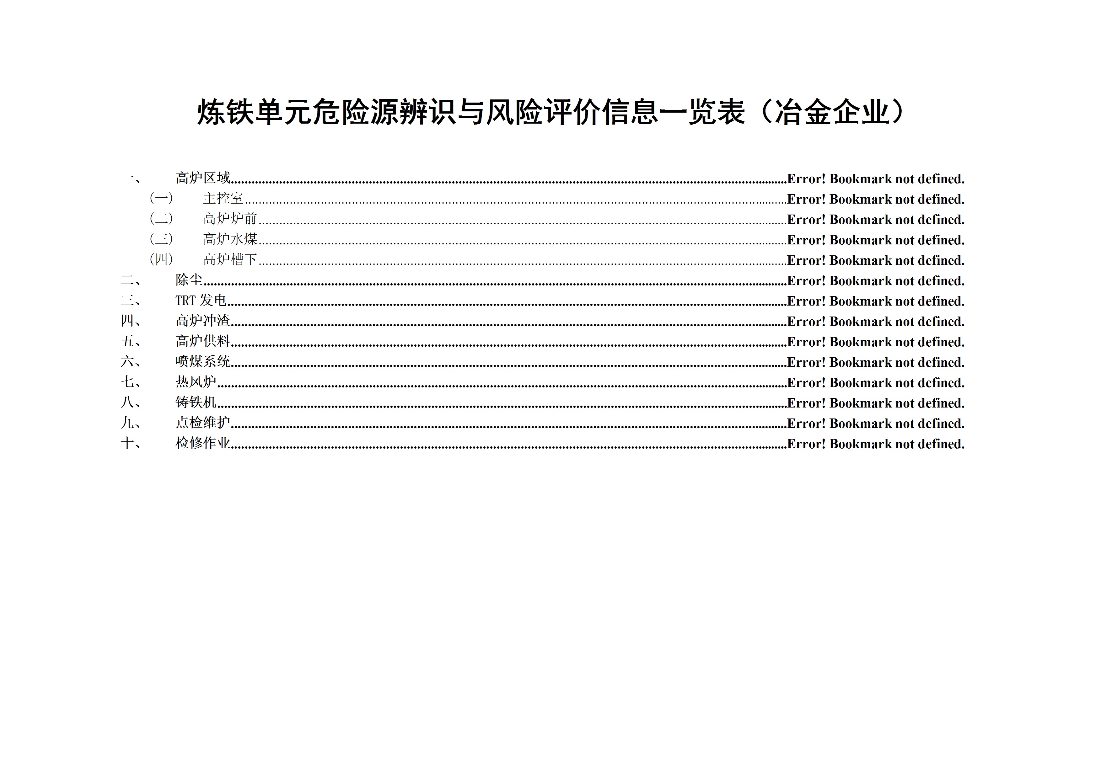 / 炼铁单元危险源辨识与风险评价信息一览表冶金企业[文档]