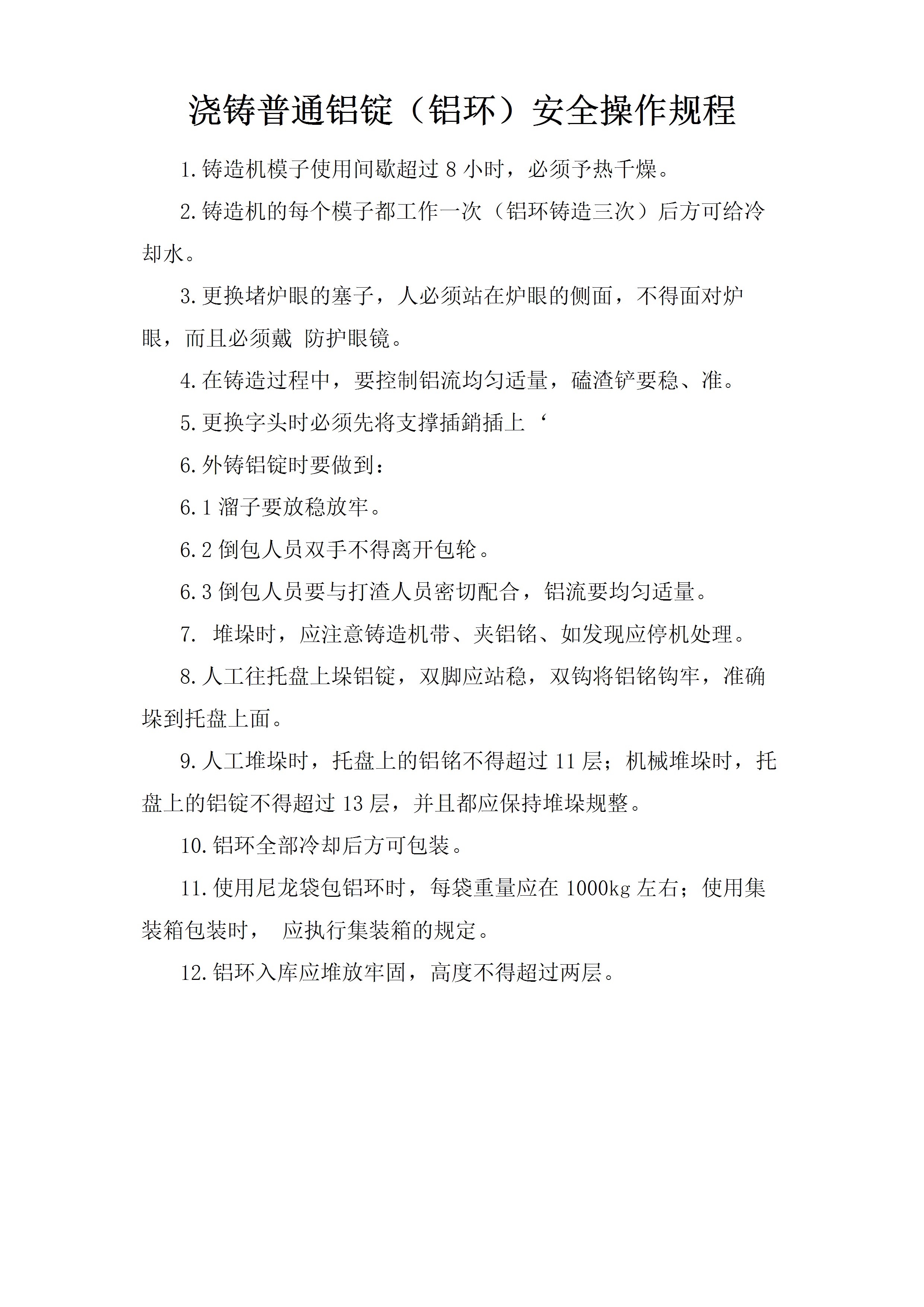 / 浇铸普通铝锭铝环安全操作规程[文档]