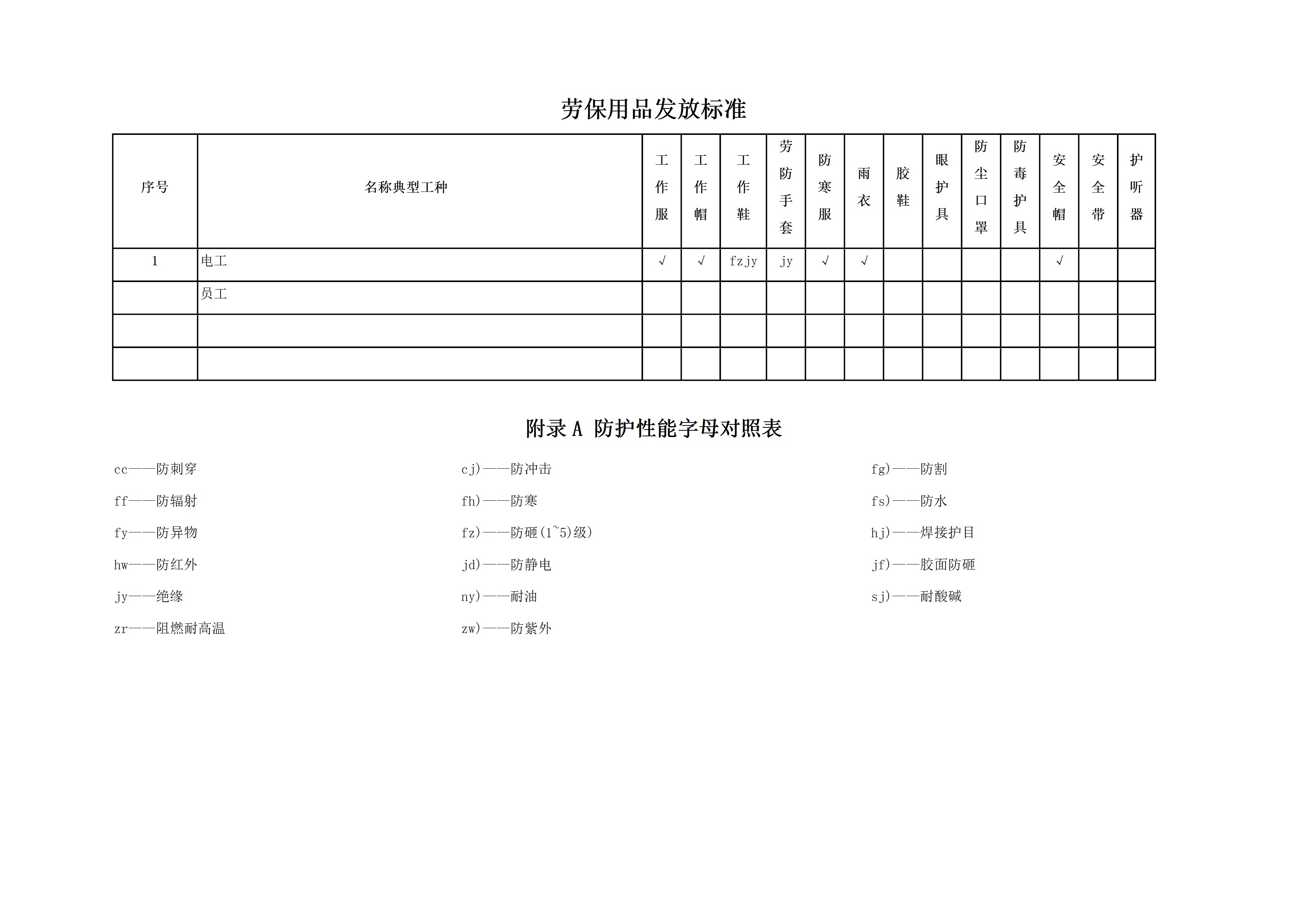 / 劳保用品配备标准[文档]