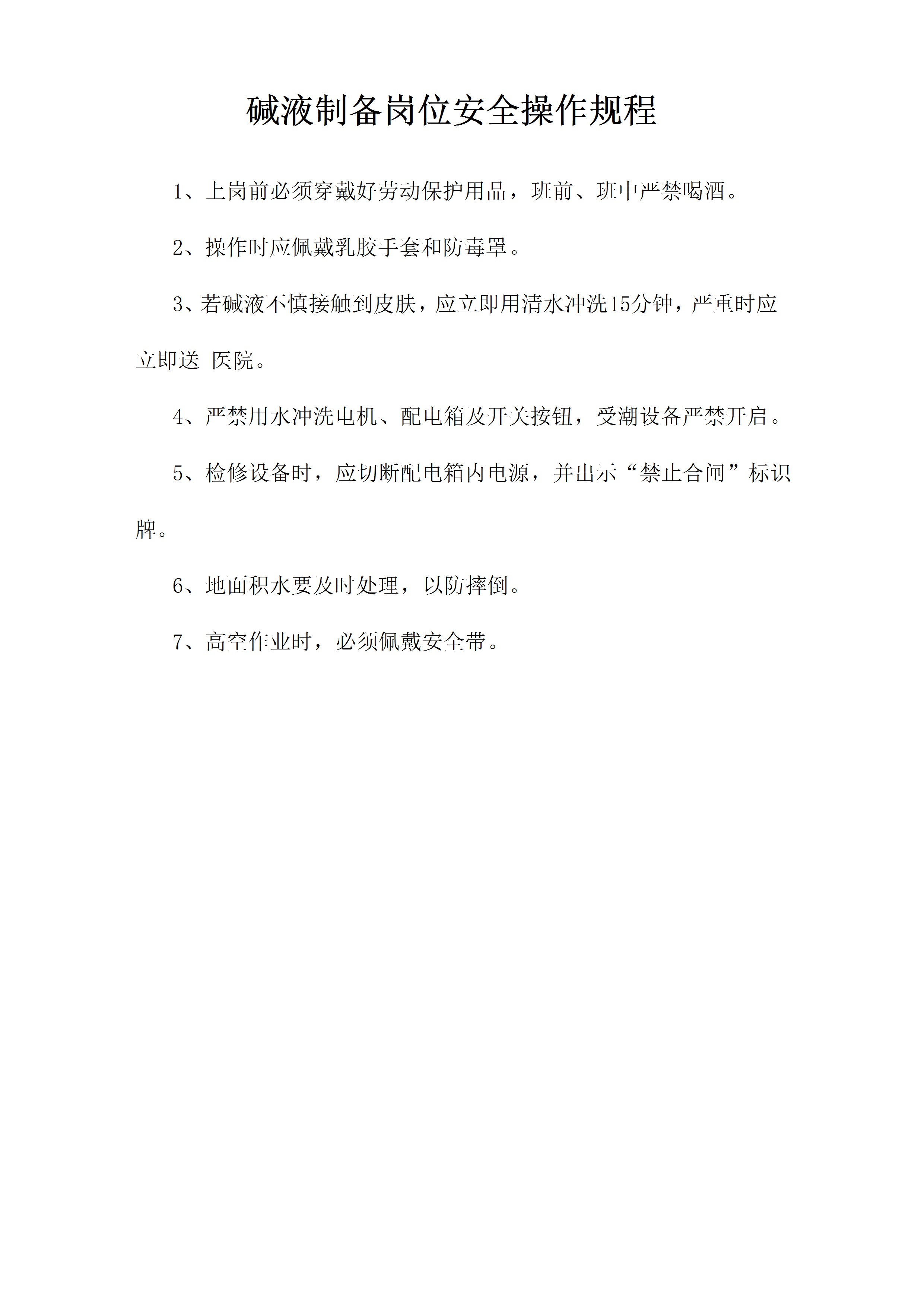 / 碱液制备岗位安全操作规程[文档]