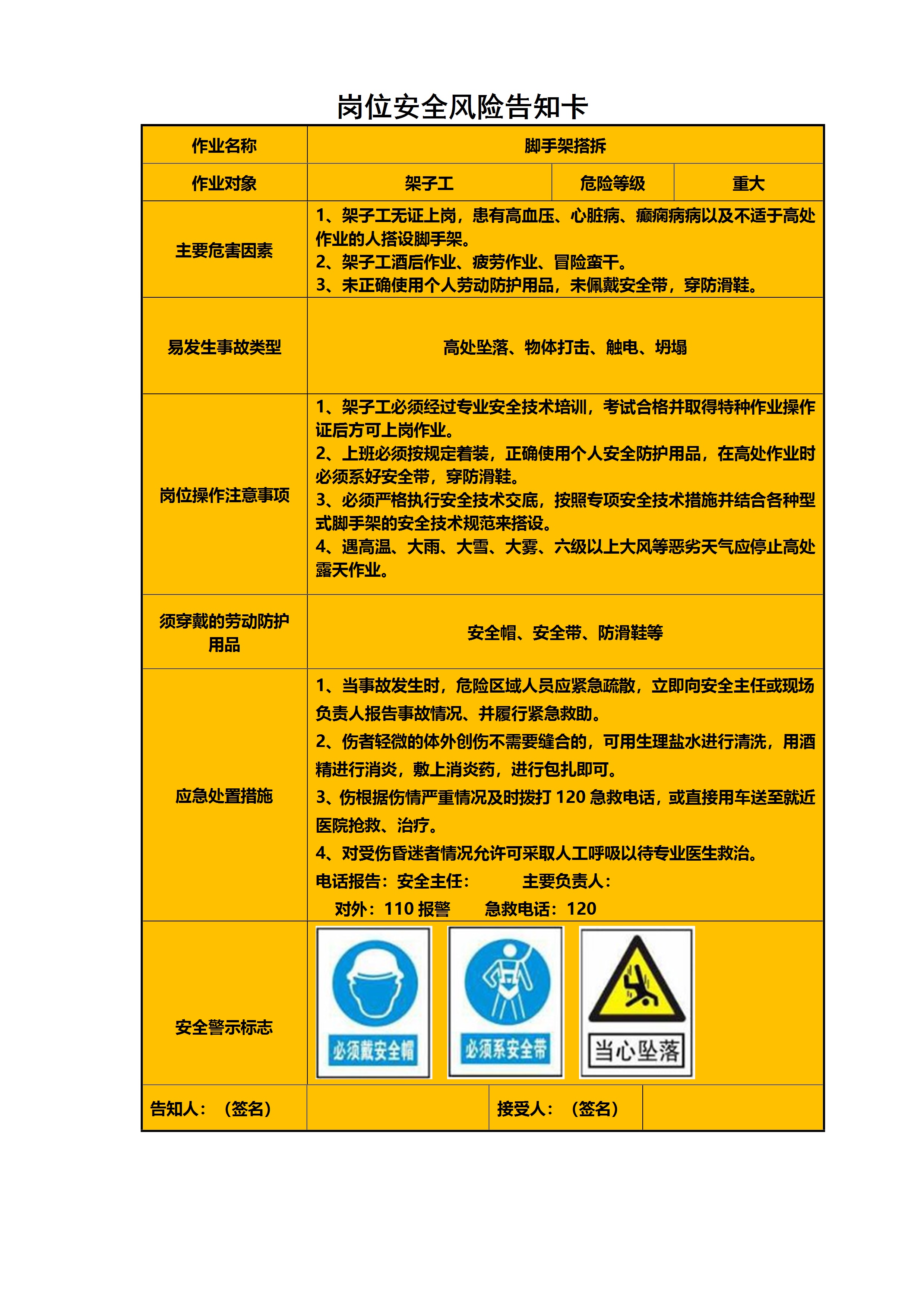 / 建筑施工各岗位安全风险告知卡[文档]