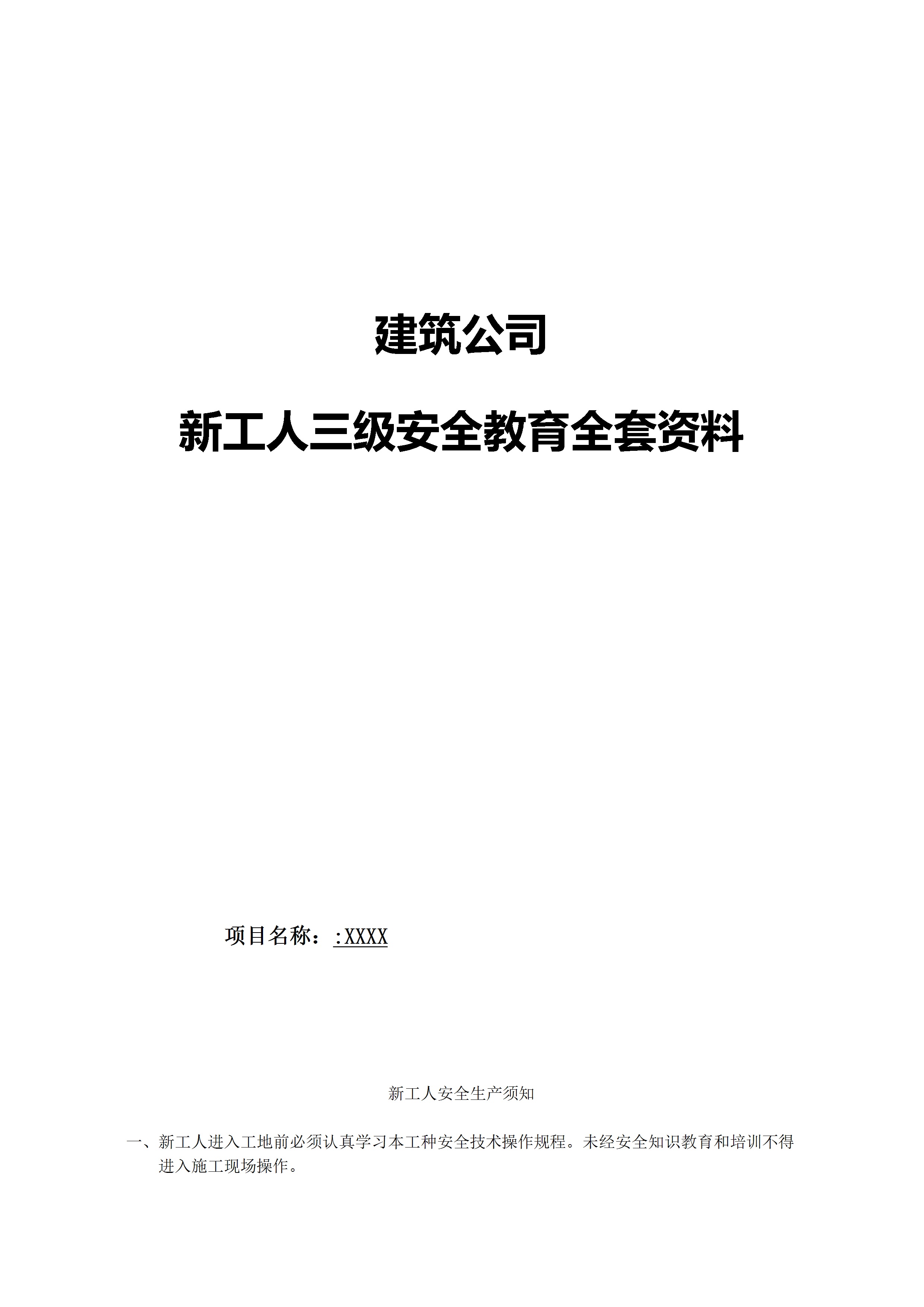 / 建筑公司新工人三级安全教育全套资料[文档]