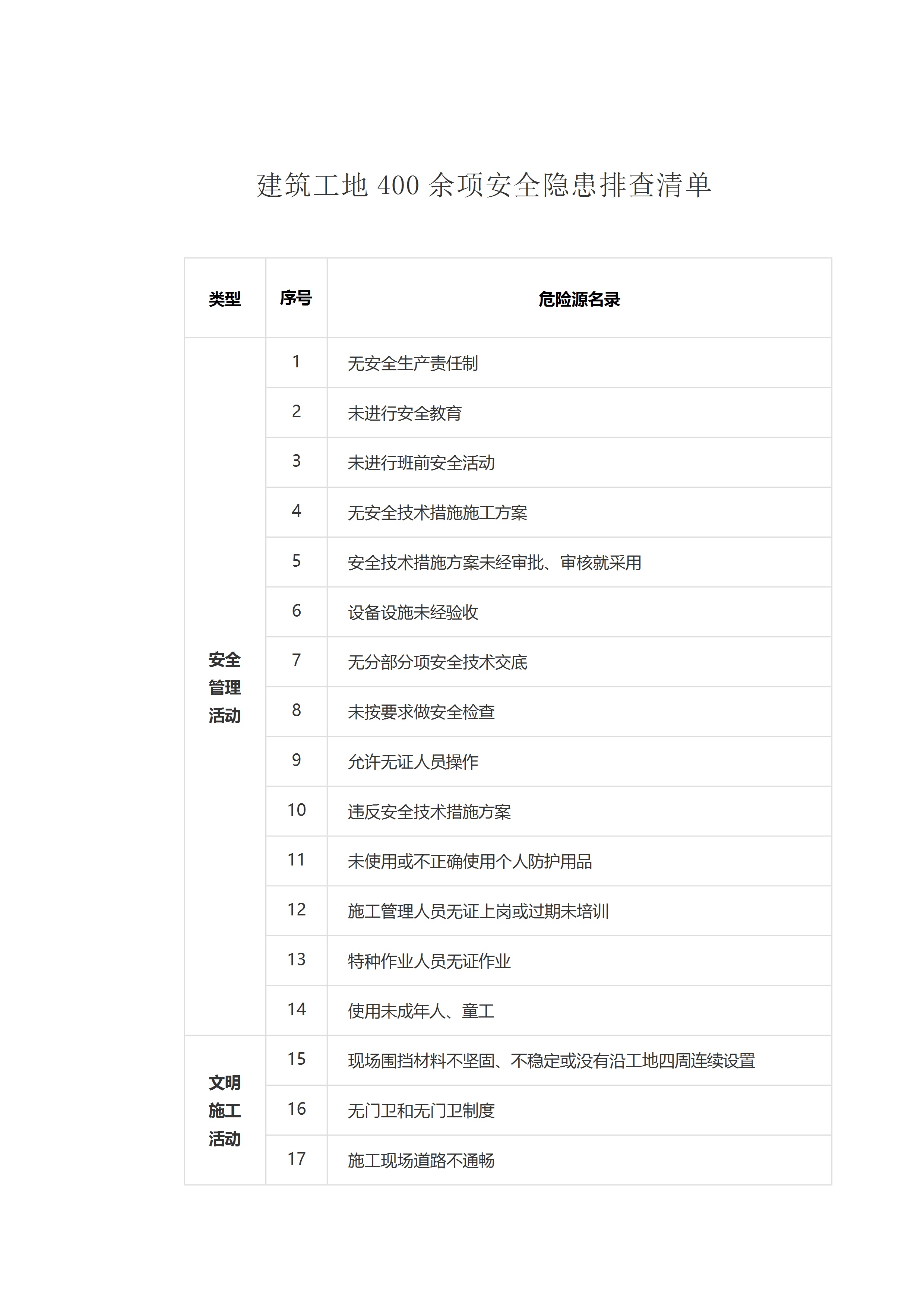 / 建筑工地400余项安全隐患排查清单[文档]