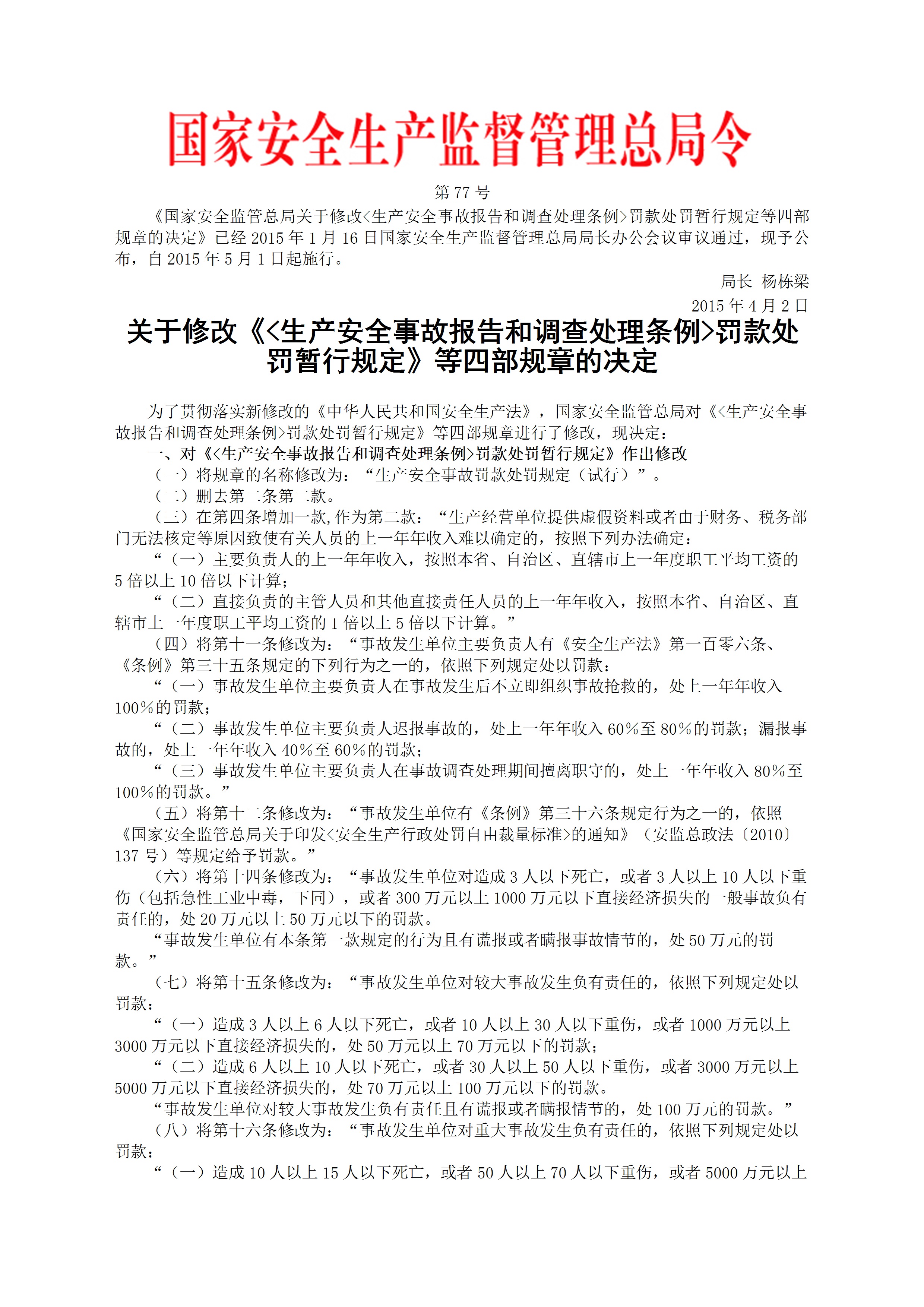 / 国家安监总局令2015第77号关于修改四部规章的决定[文档]