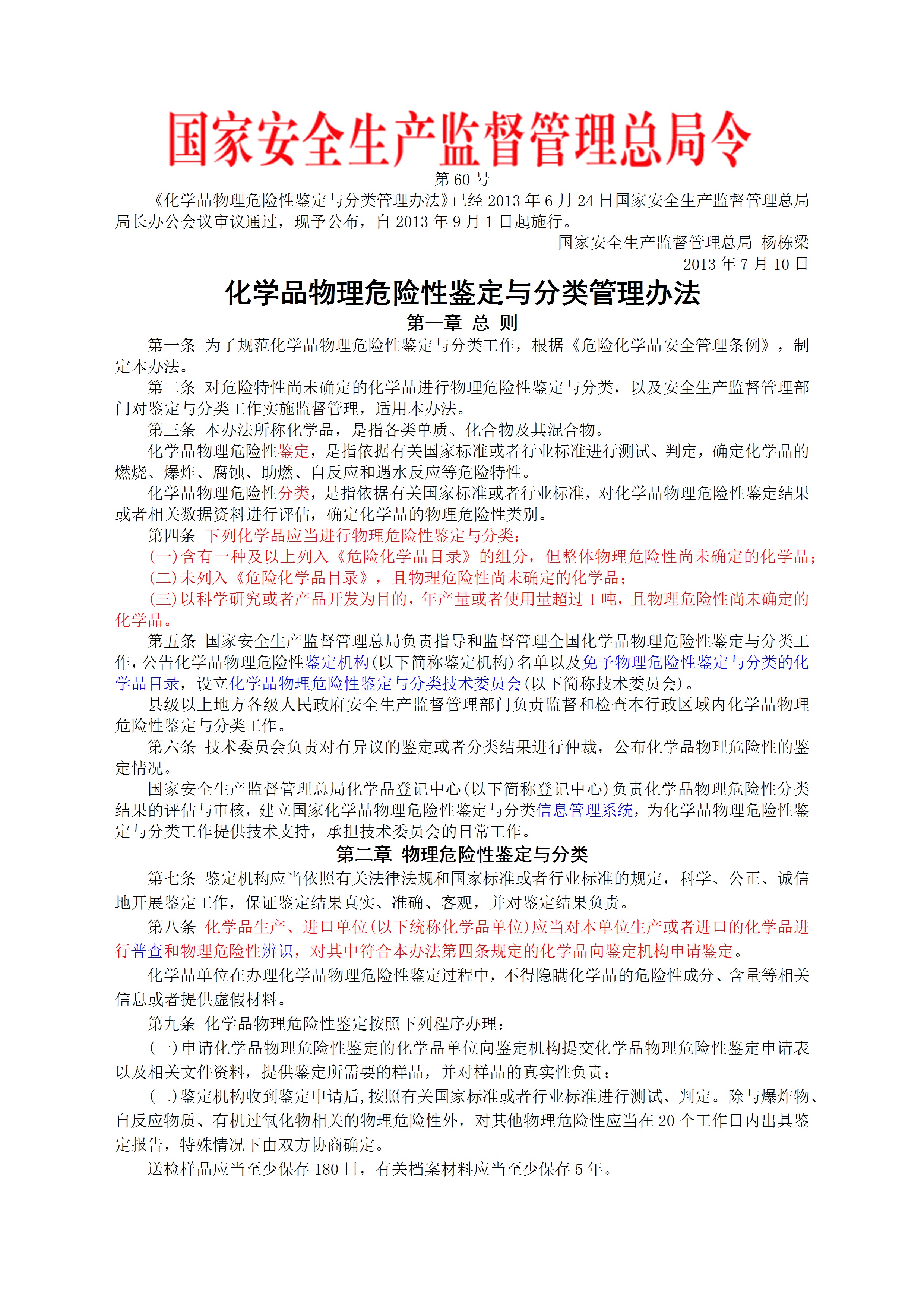 国家安监总局令2013第60号化学品物理危险性鉴定与分类管理办法[文档]