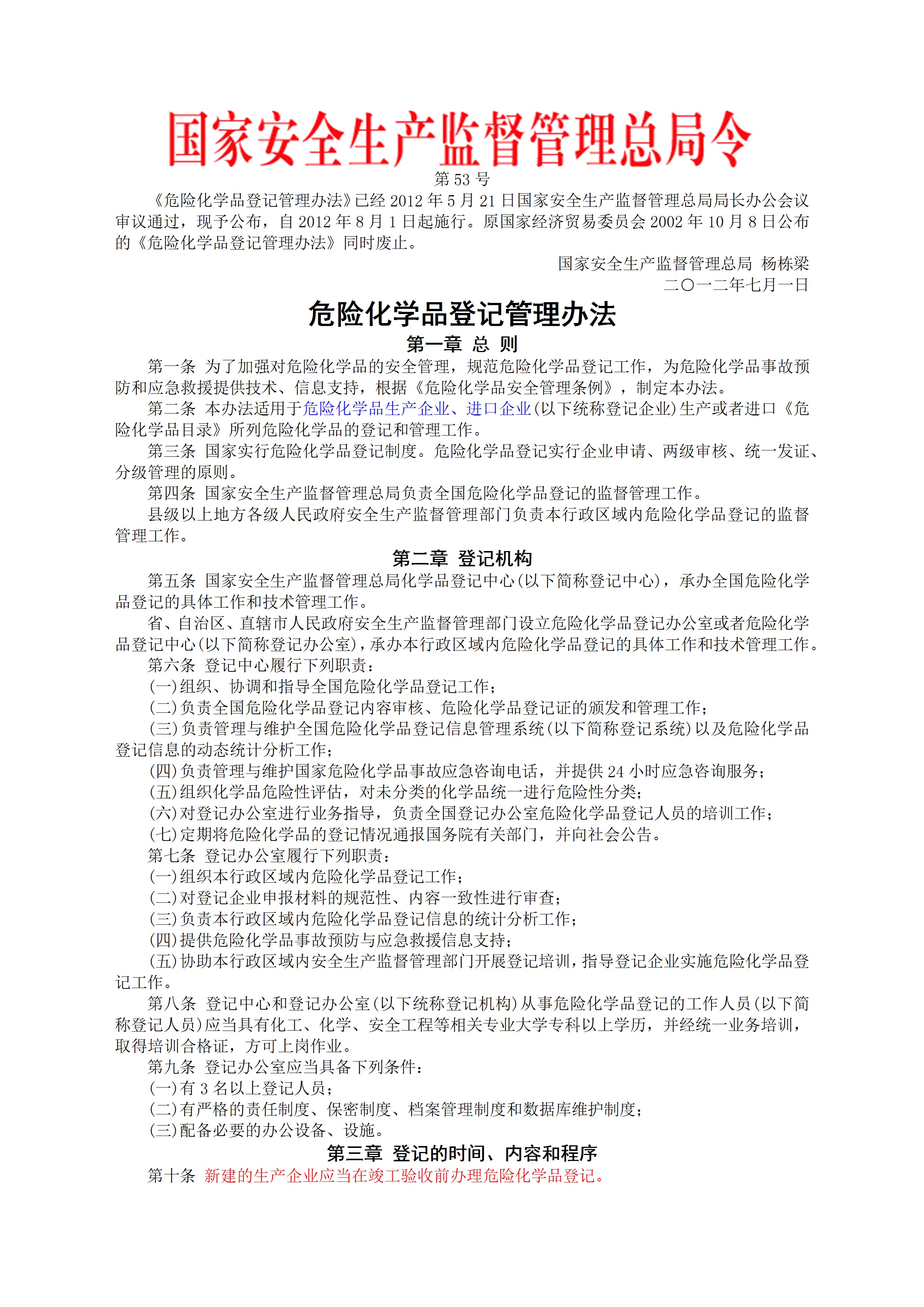/ 国家安监总局令2012第53号危险化学品登记管理办法[文档]