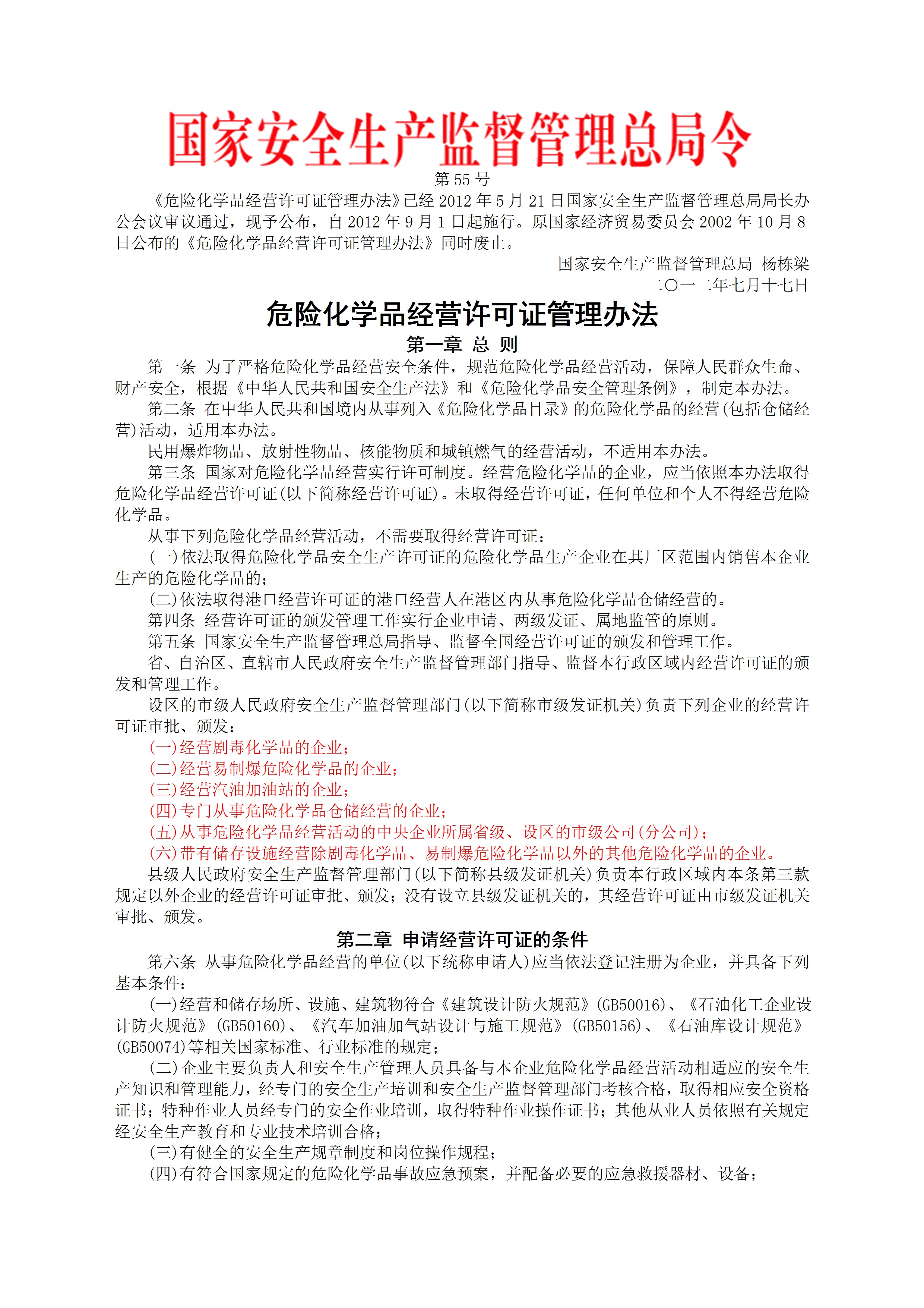 / 国家安监总局令2012第55号危险化学品经营许可证管理办法[文档]