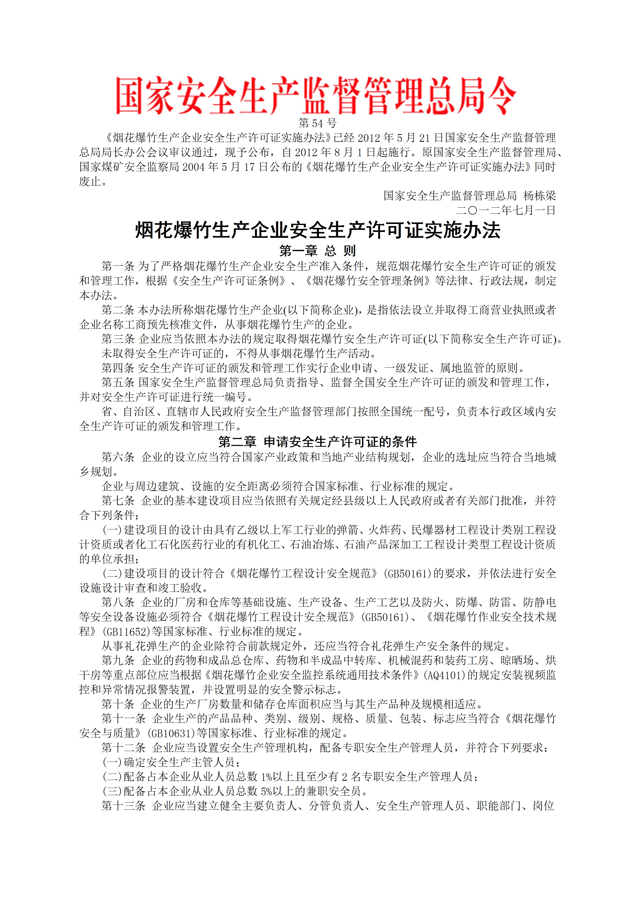 国家安监总局令2012第54号烟花爆竹生产企业安全生产许可证实施办法[文档]