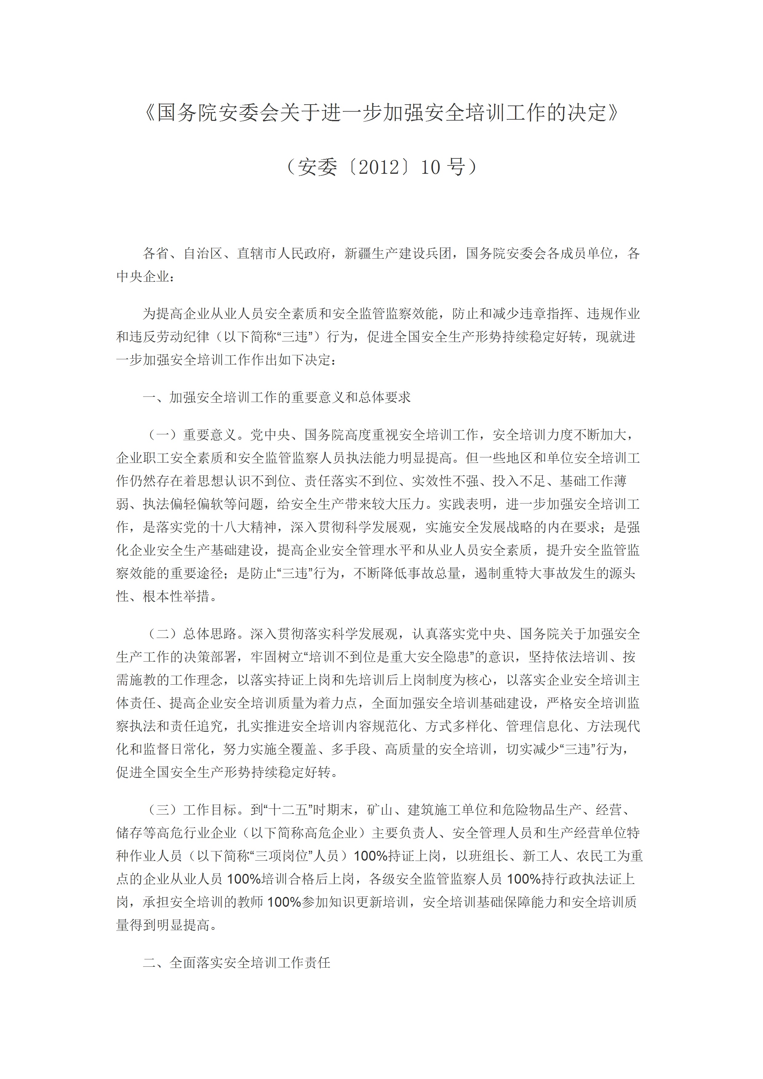 国务院安委会关于进一步加强安全培训工作的决定安委201210号[文档]