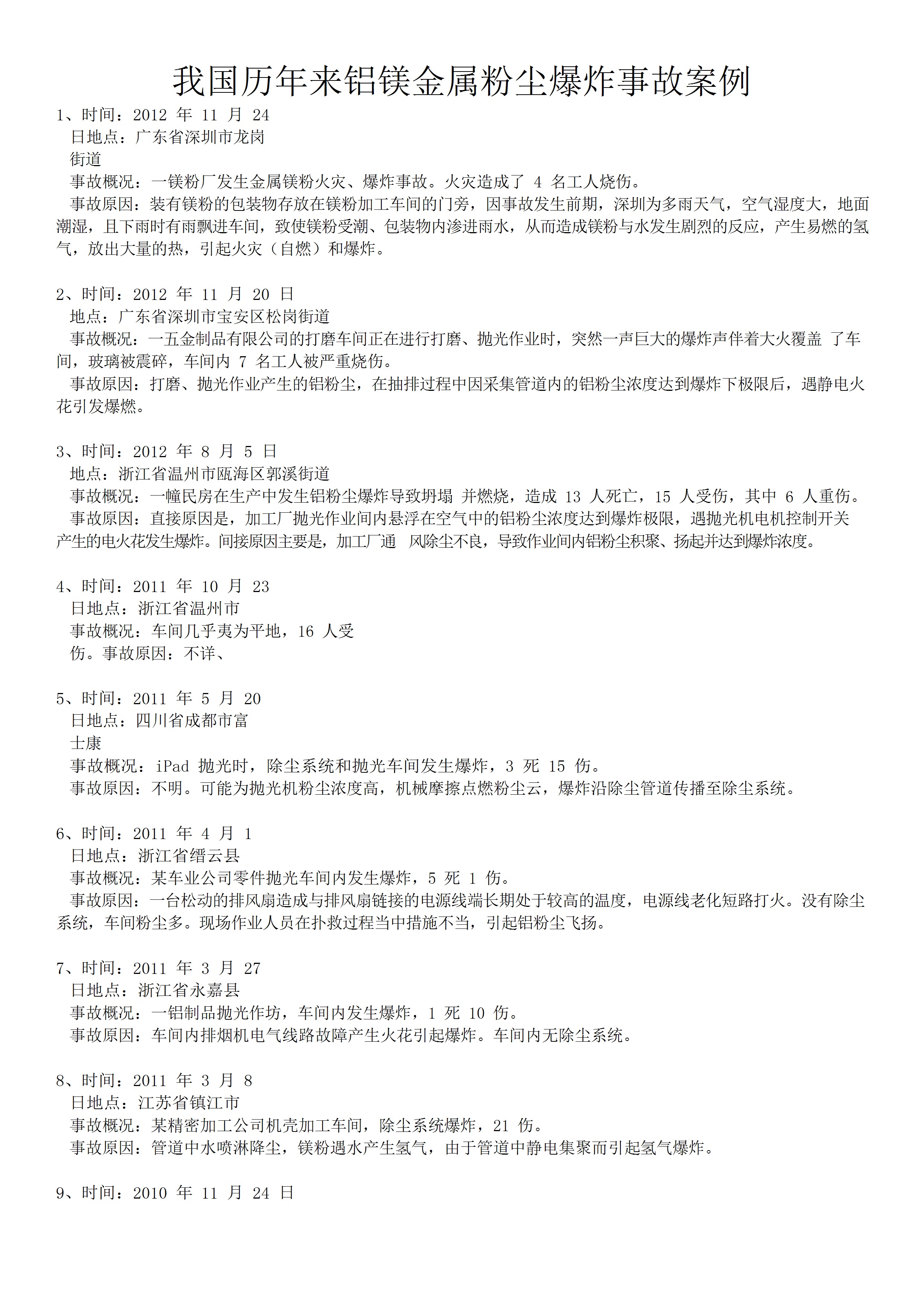 我国历年来铝镁金属粉尘爆炸事故案例[文档]