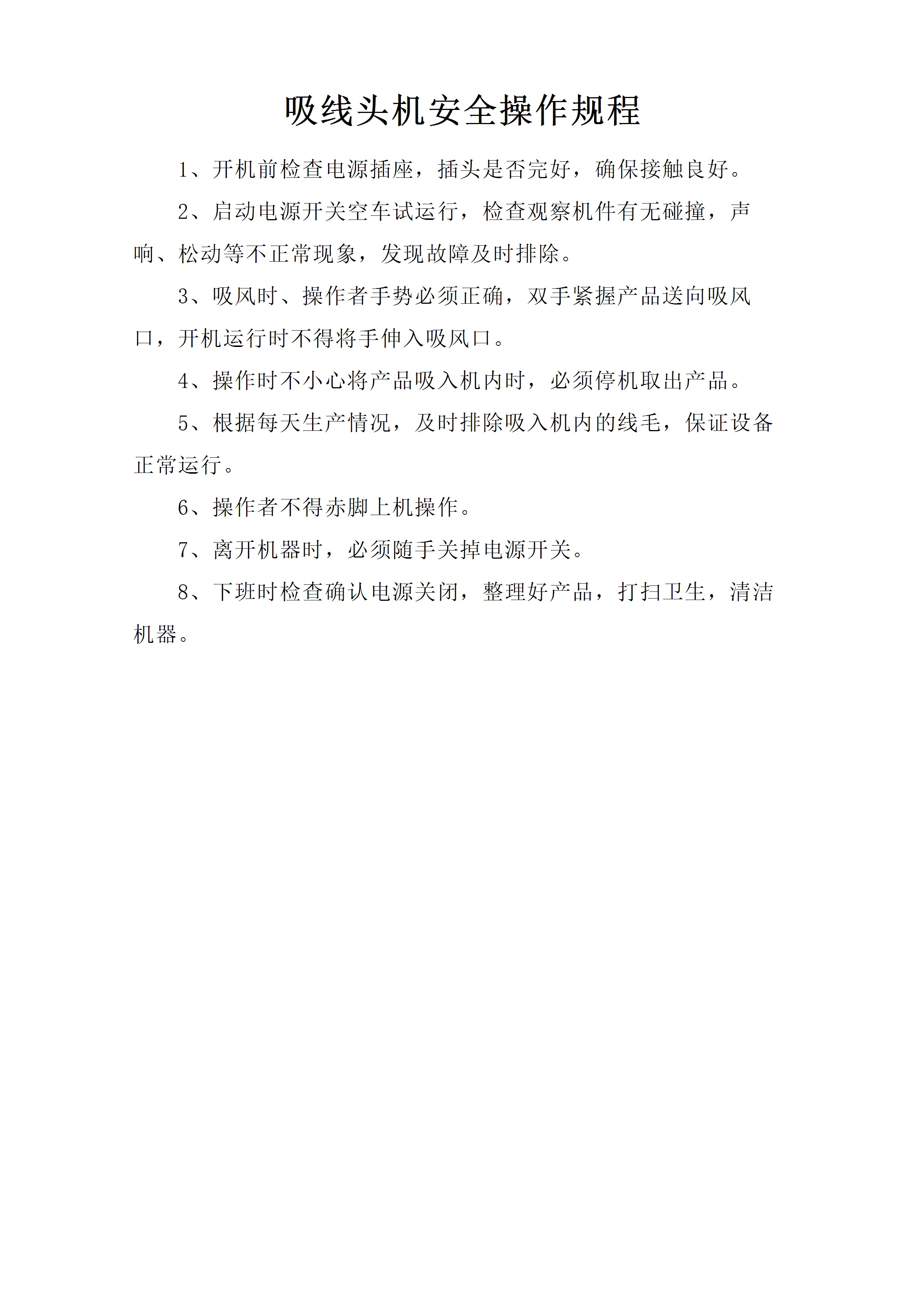 / 吸线头机安全操作规程[文档]