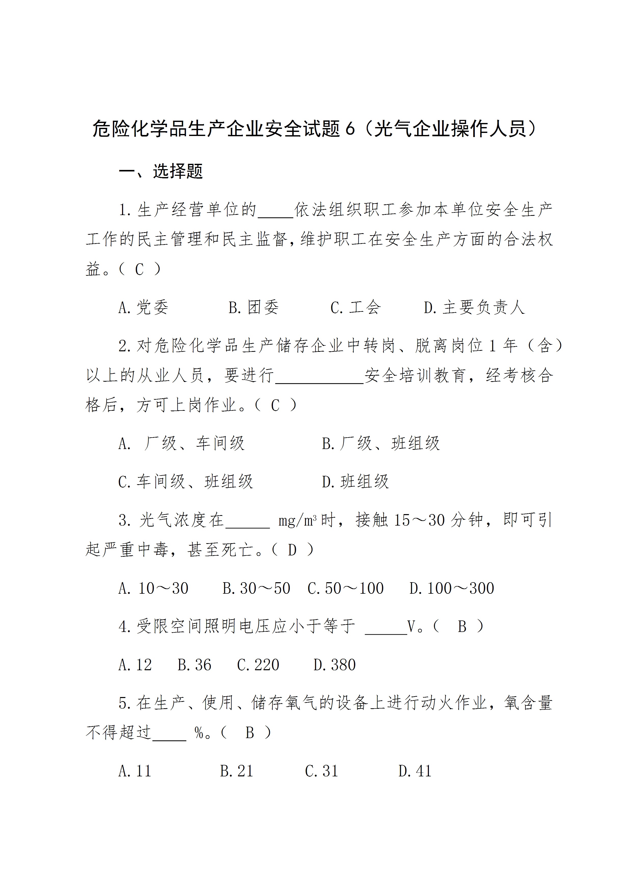 / 危险化学品生产企业安全试题-光气化从业人员[文档]