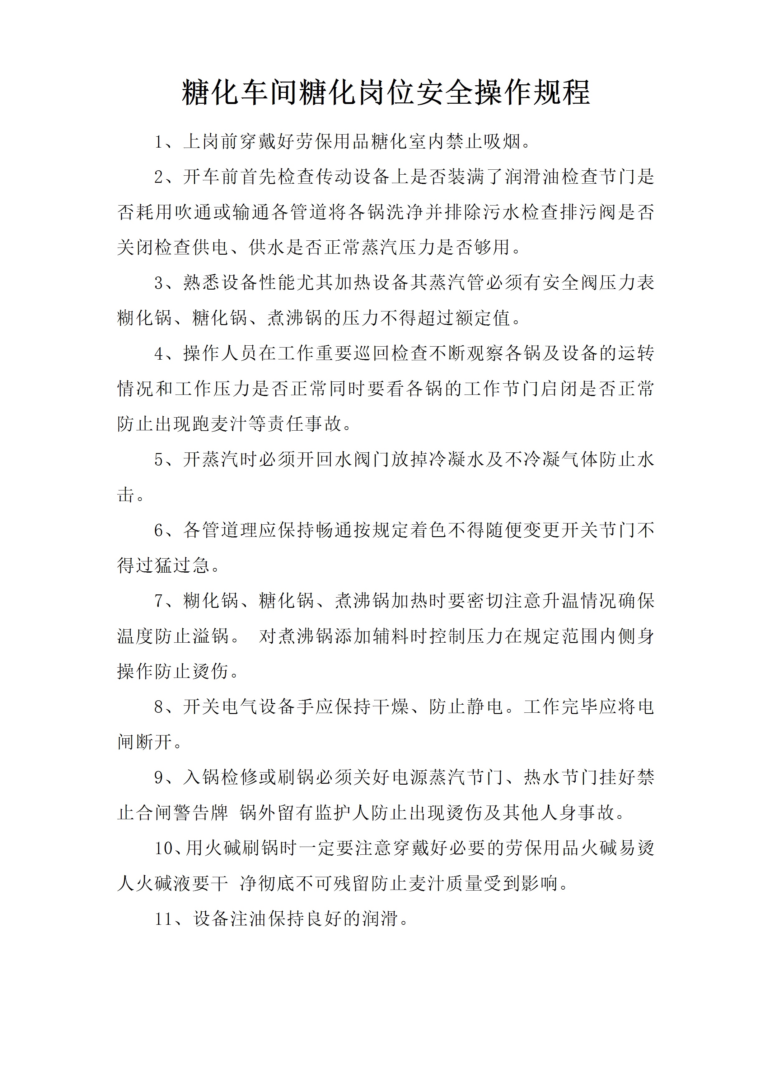 / 糖化车间糖化岗位安全操作规程[文档]