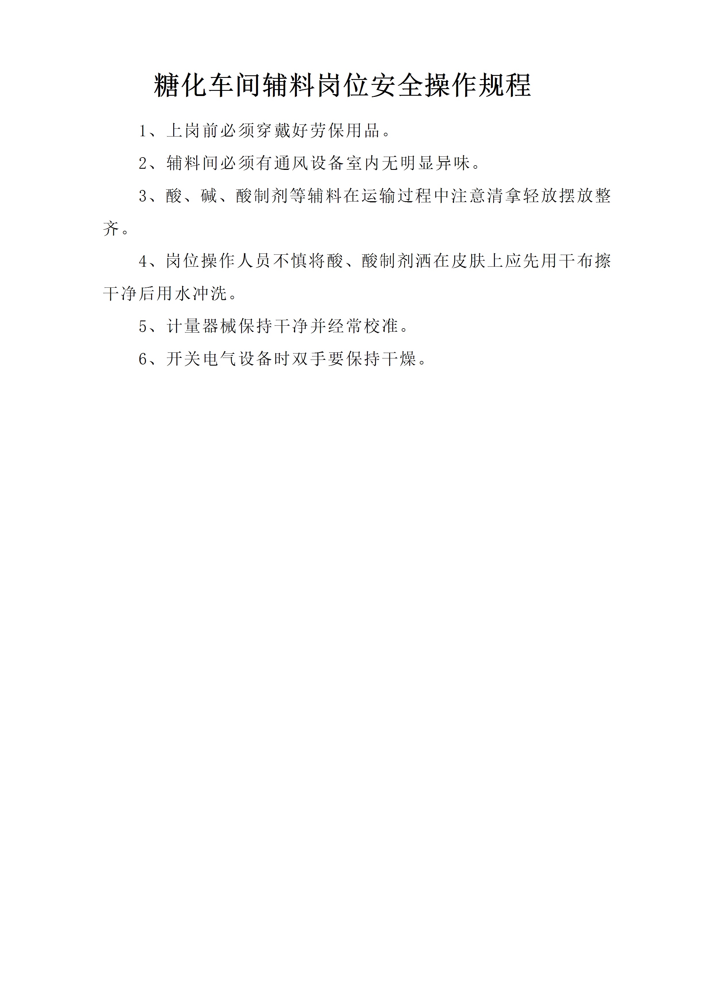 / 糖化车间辅料岗位安全操作规程[文档]