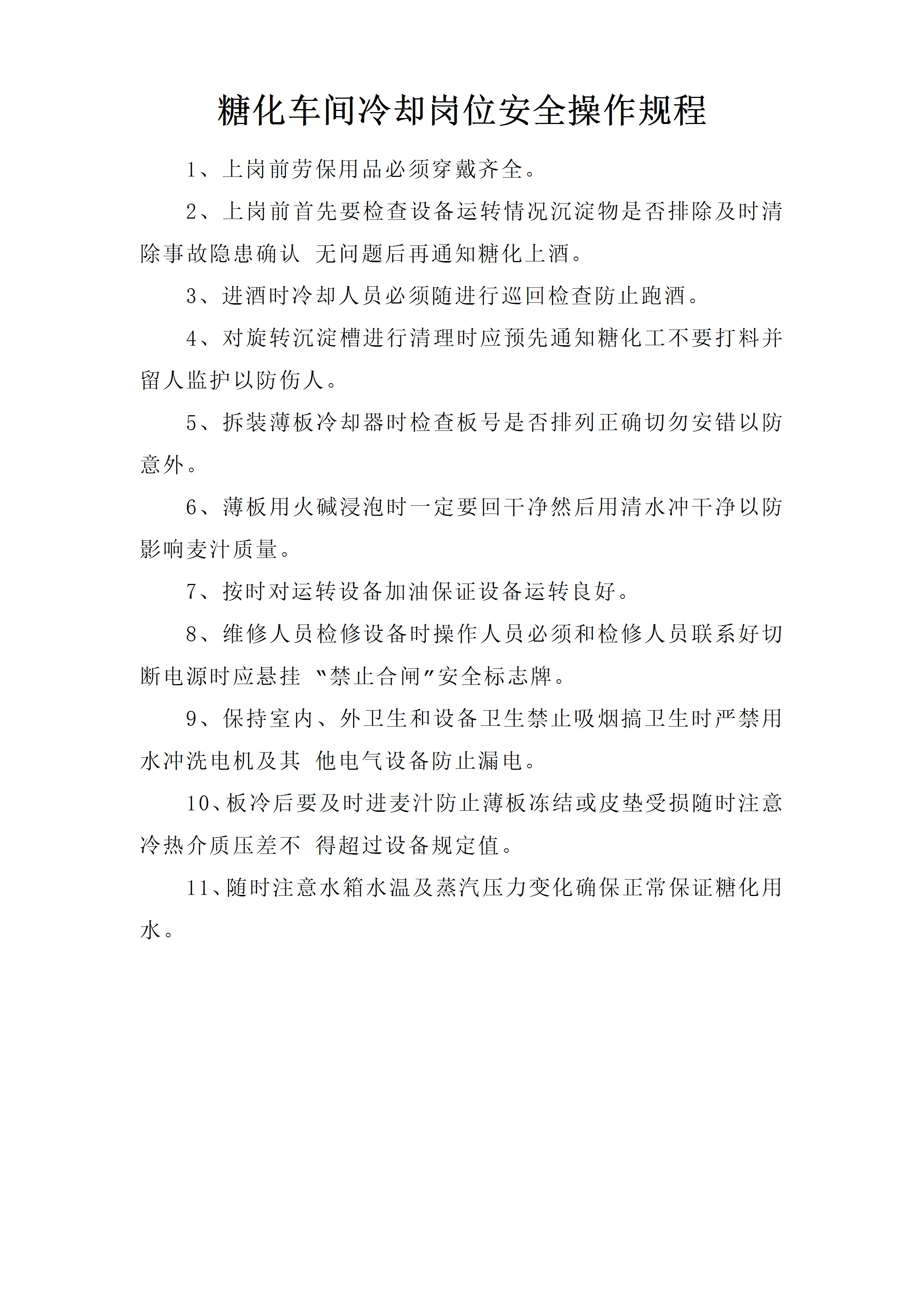 / 糖化车间冷却岗位安全操作规程[文档]