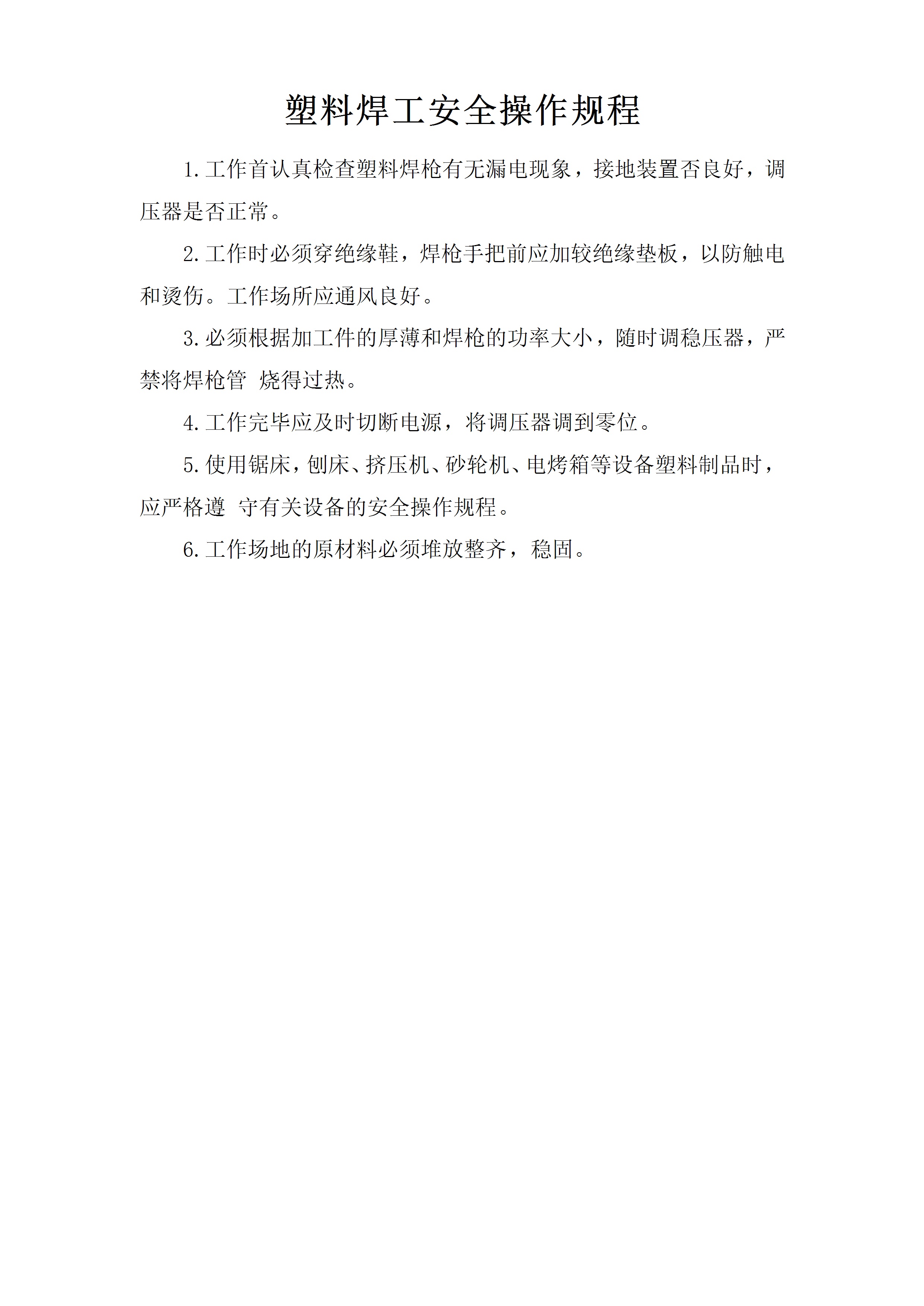 / 塑料焊工安全操作规程[文档]
