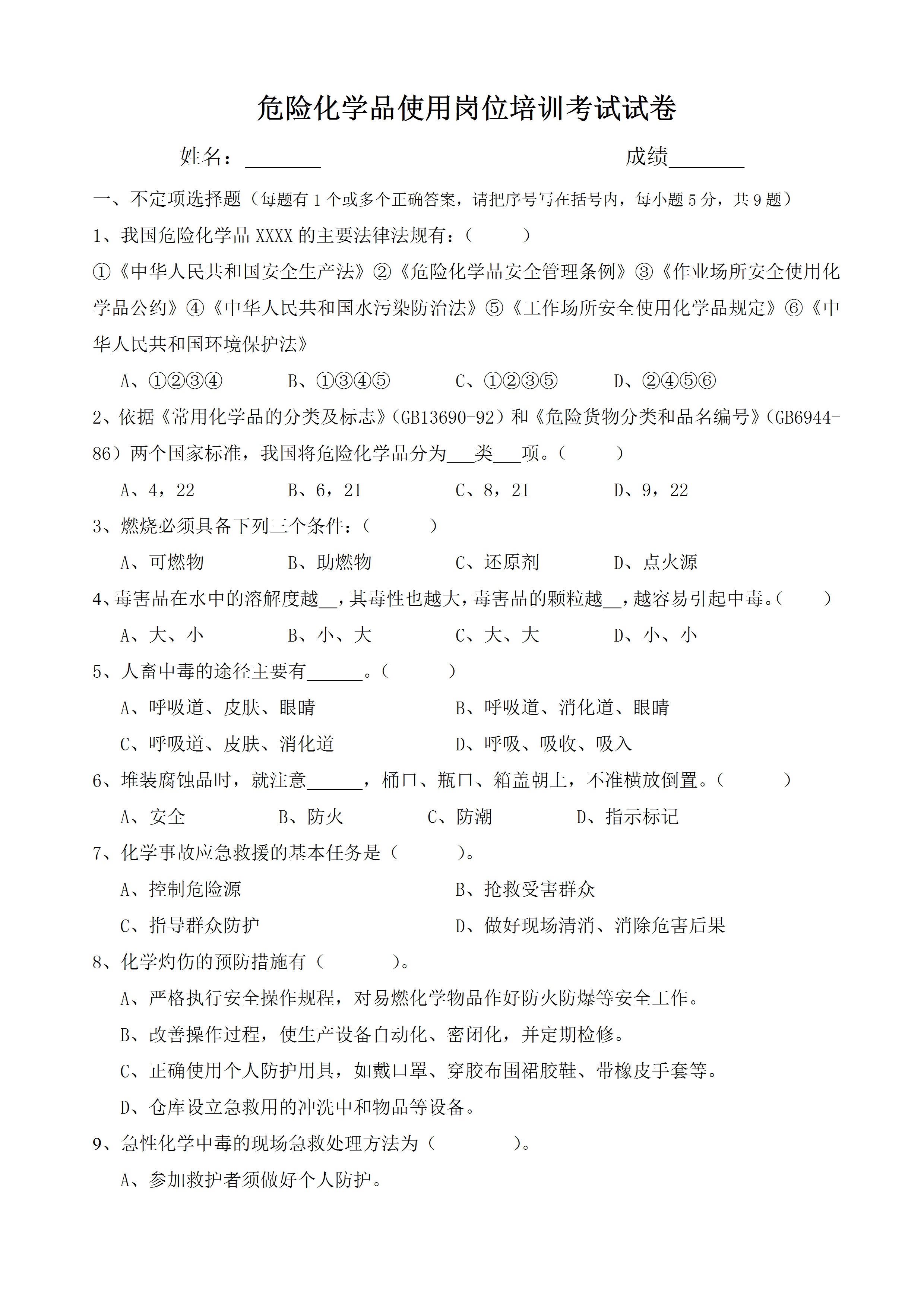 危险化学品经营企业安全知识考题主要负责人安全管理人员[文档]