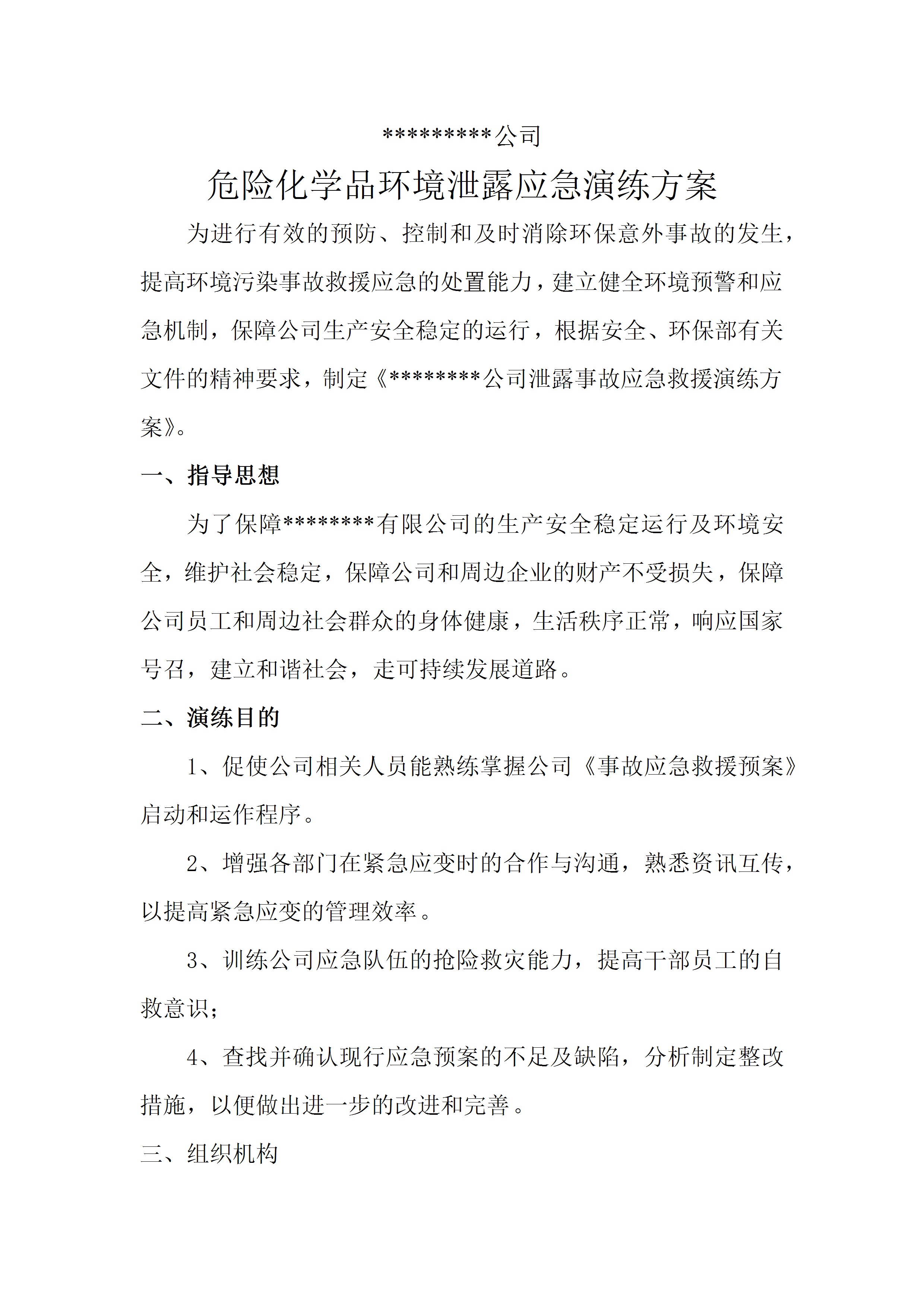 / 危险化学品环境泄漏应急演练方案范本[文档]
