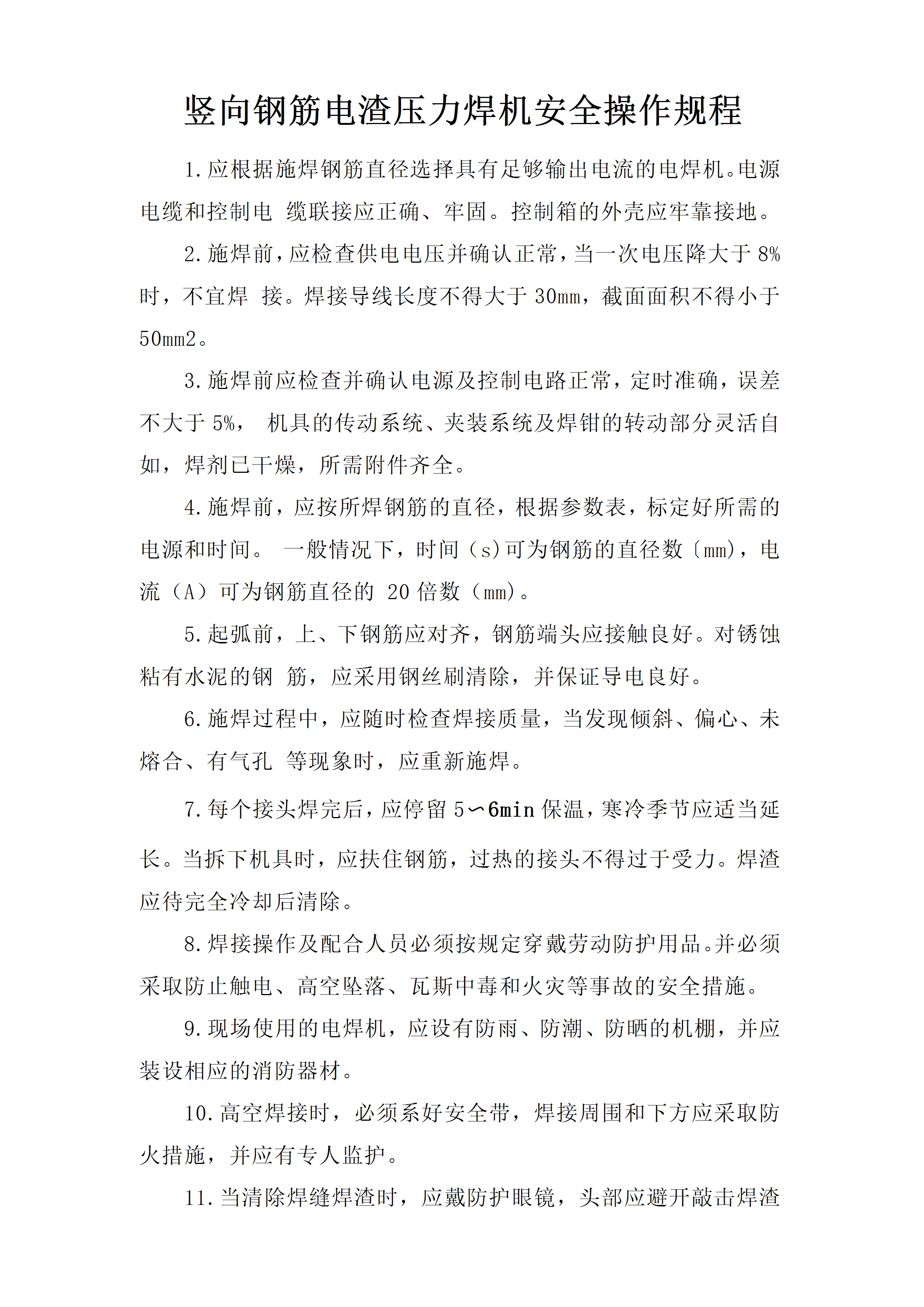/ 竖向钢筋电渣压力焊机安全操作规程[文档]