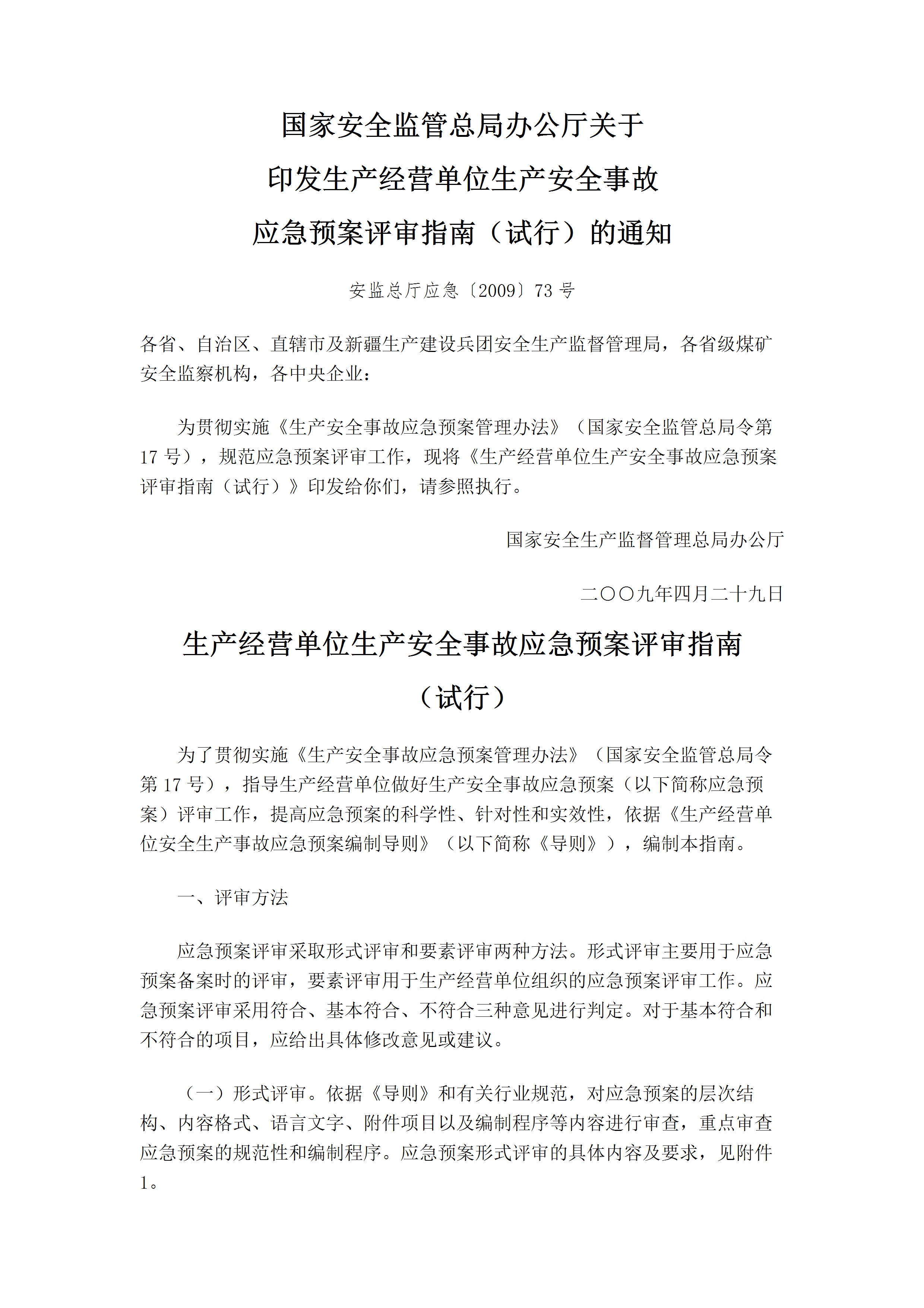 生产经营单位生产安全事故应急预案评审指南试行安监总厅应急200973号[文档]