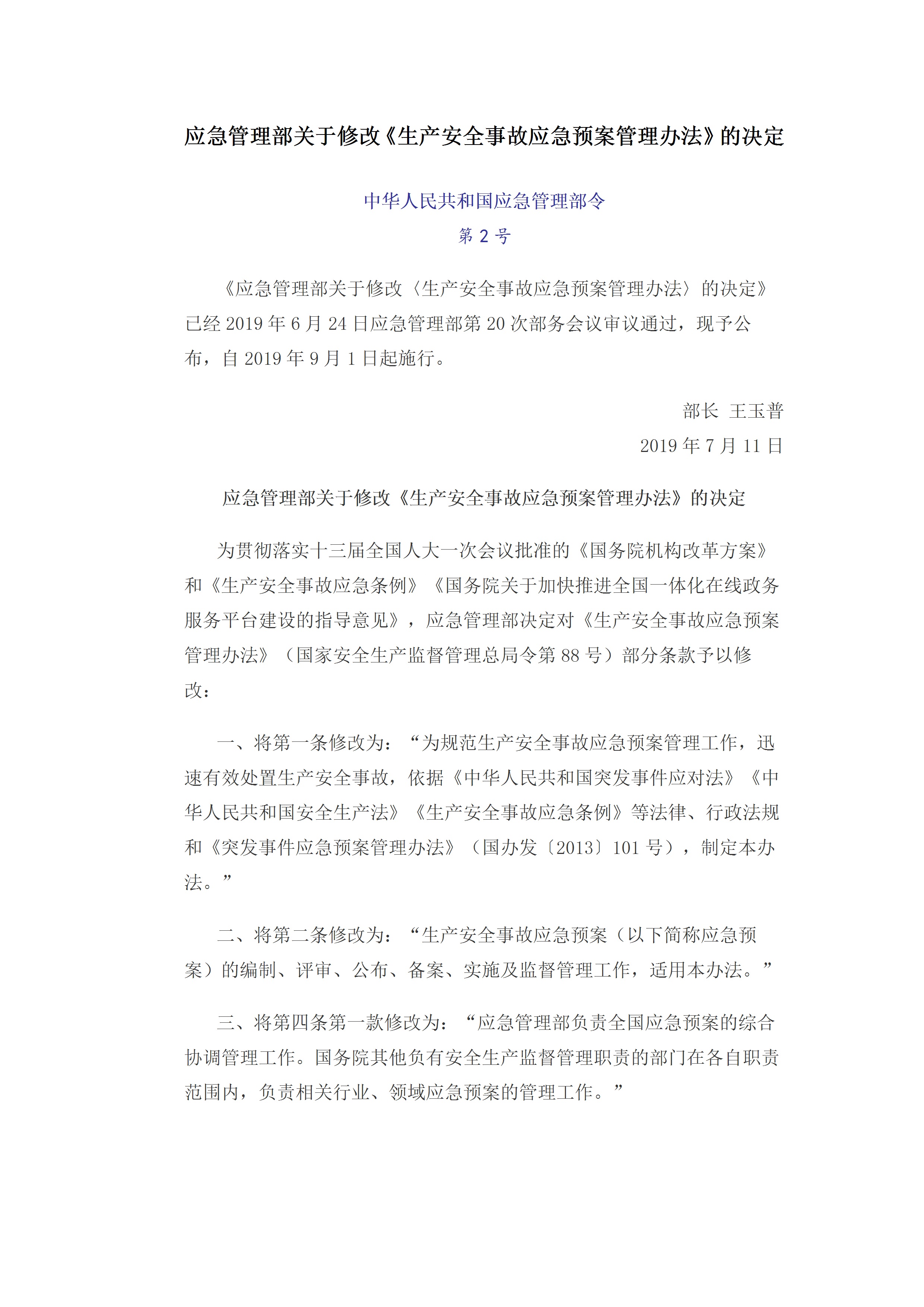 / 生产安全事故应急预案管理办法应急管理部令第2号[文档]