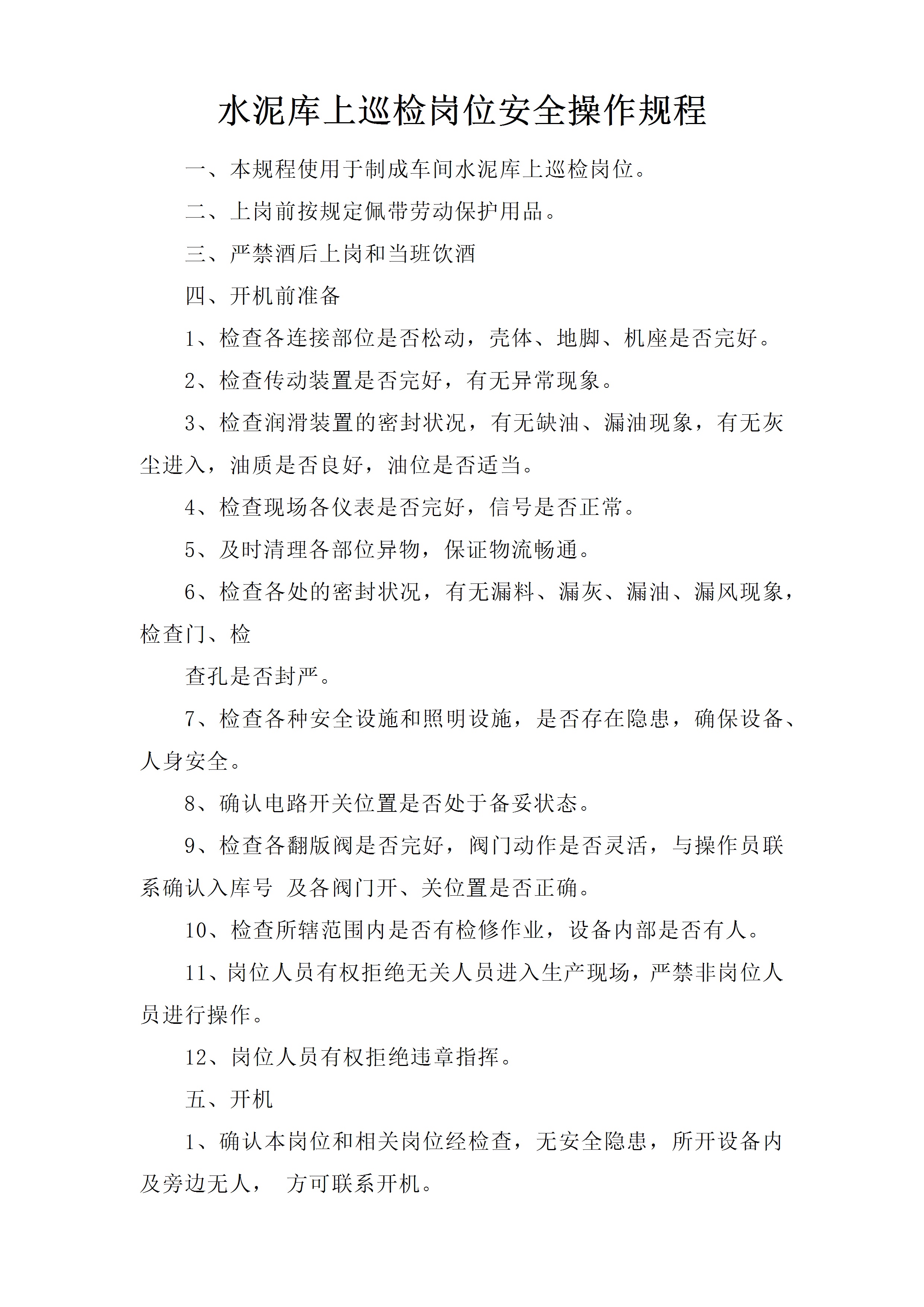 / 水泥库上巡检岗位安全操作规程[文档]
