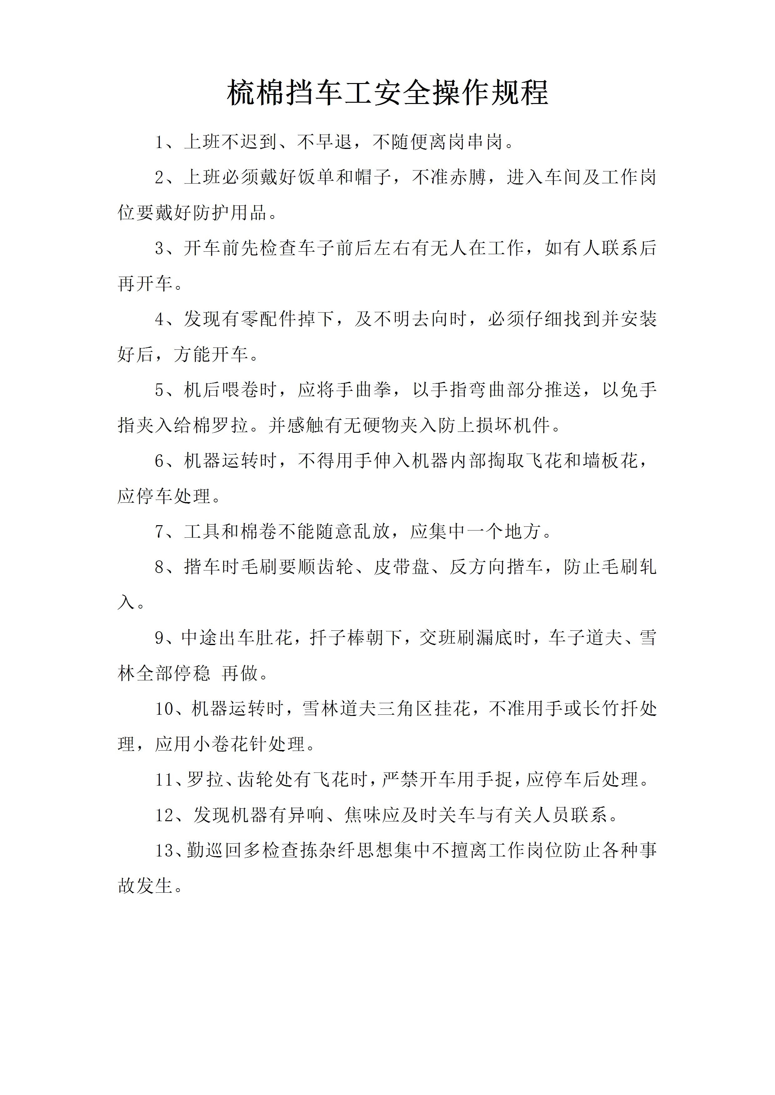 梳棉挡车工安全操作规程[文档]