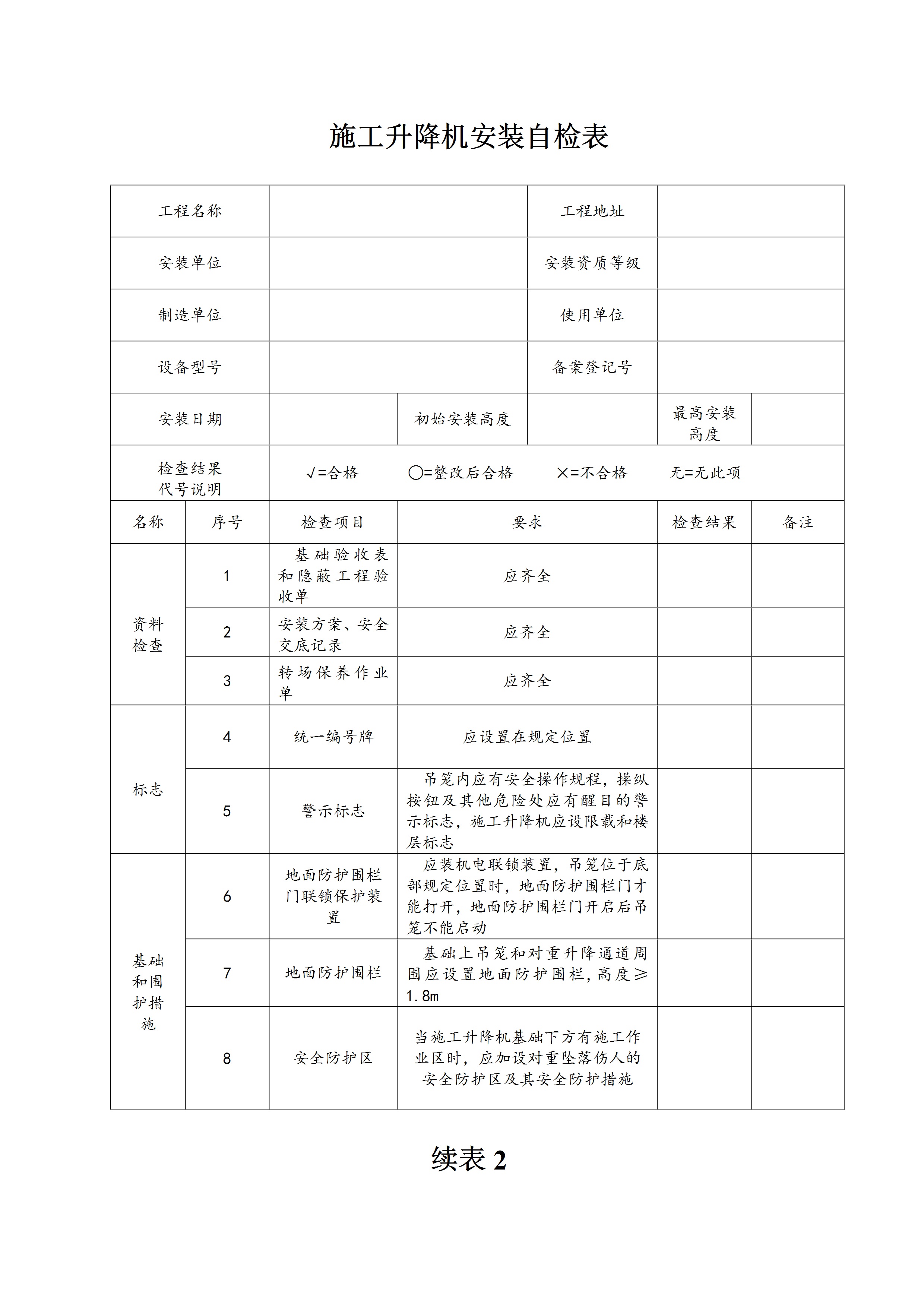 / 施工升降机安装自检表和四方联合验收表[文档]