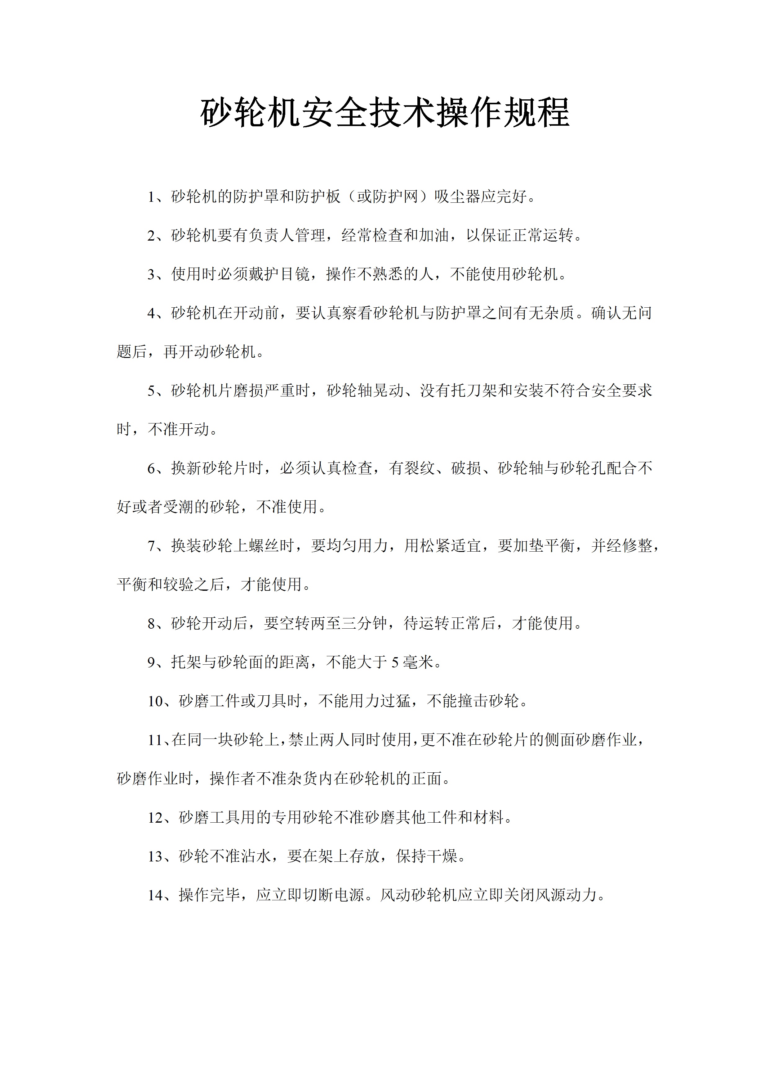/ 砂轮机安全技术操作规程[文档]