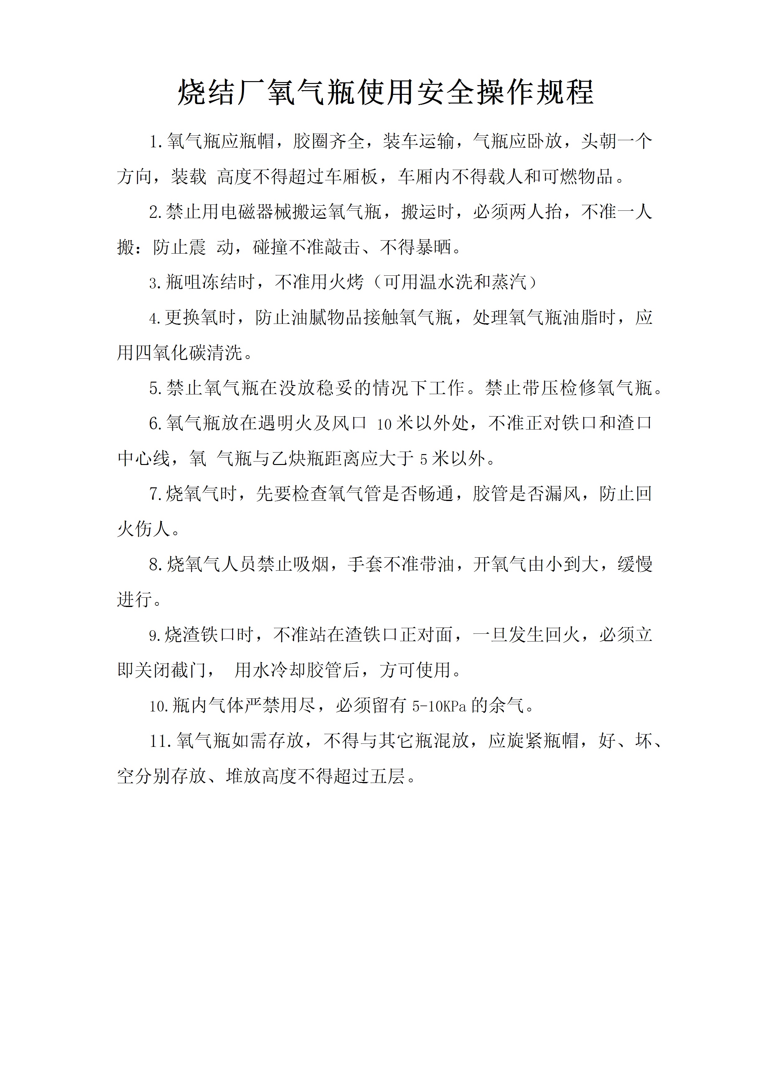 / 烧结厂氧气瓶使用安全操作规程[文档]