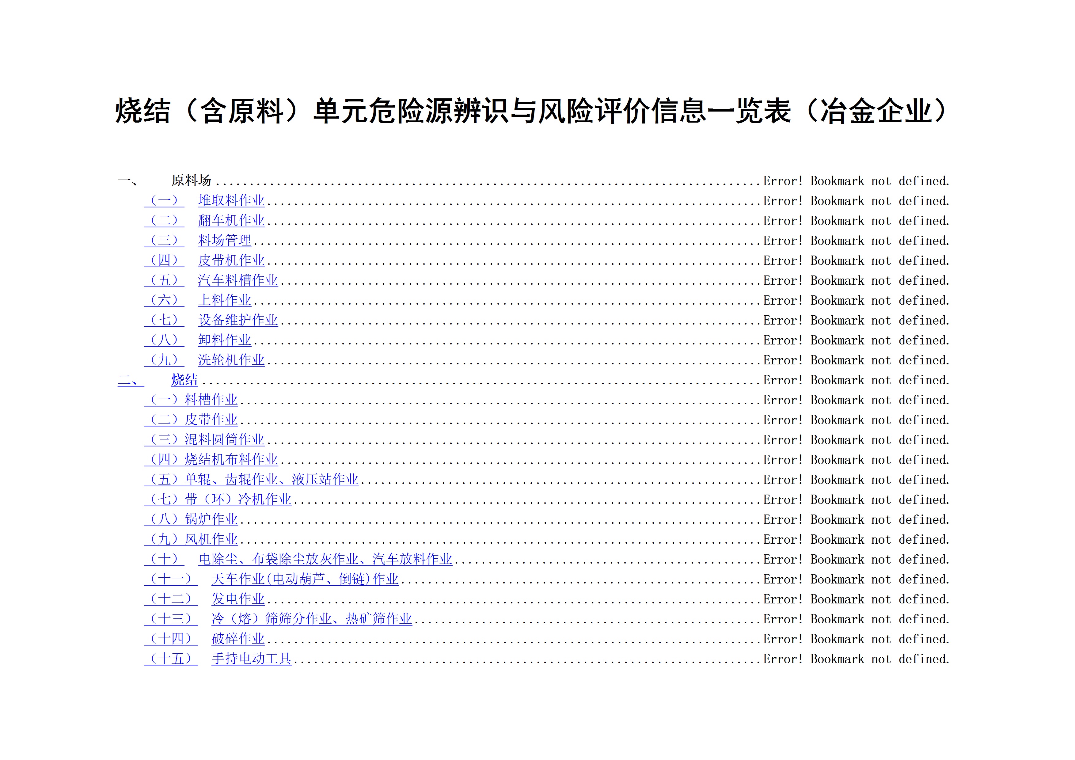 / 烧结含原料单元危险源辨识与风险评价信息一览表冶金企业[文档]
